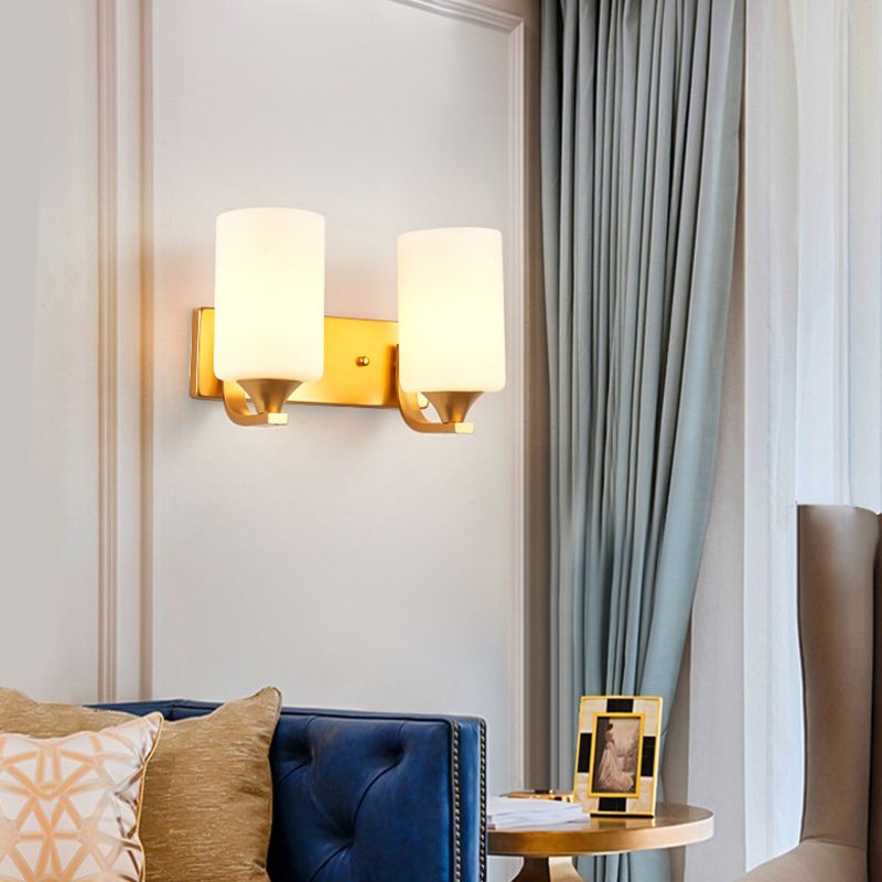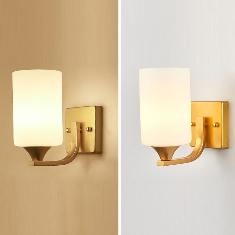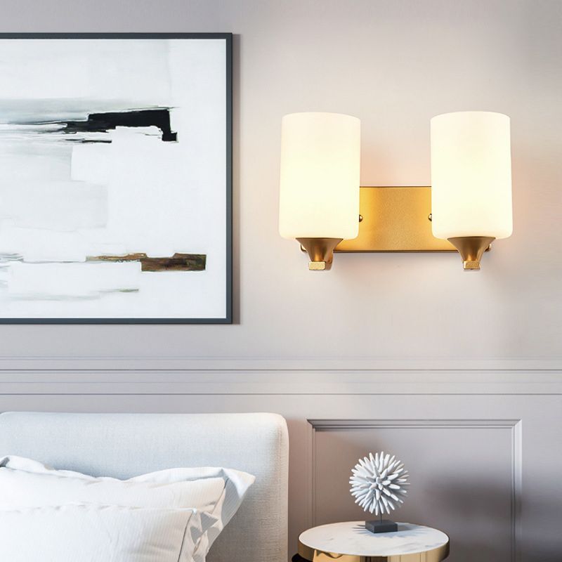 Modern Style Cylinder Shade Wall Light Glass Sconces for Bedroom