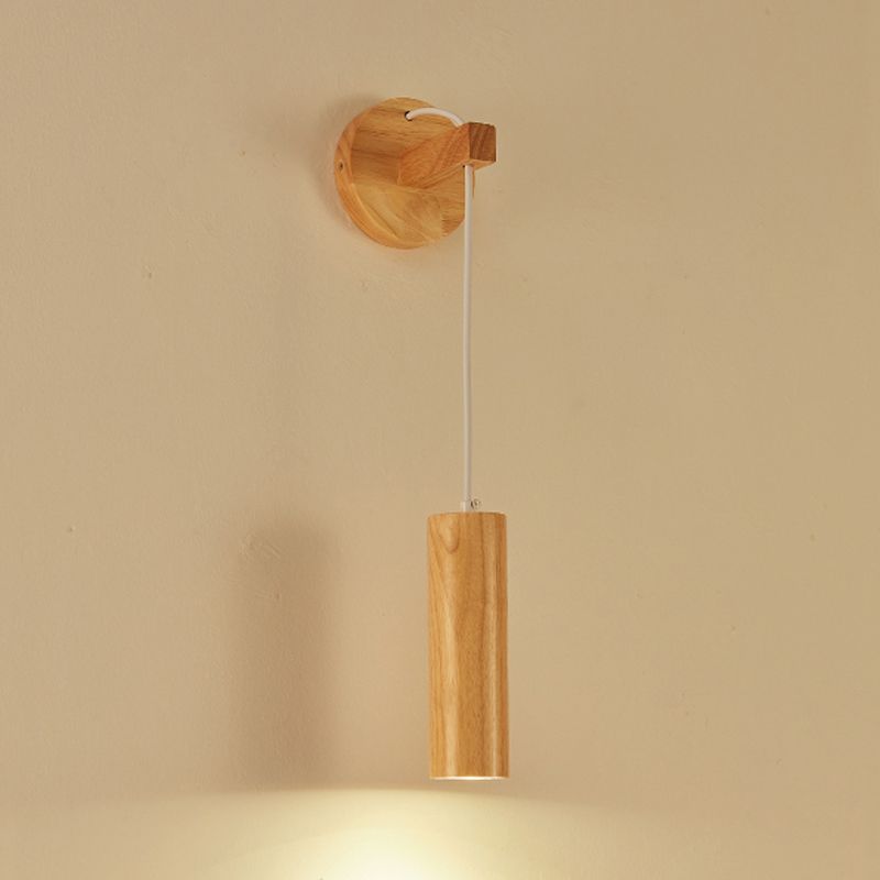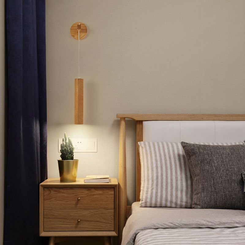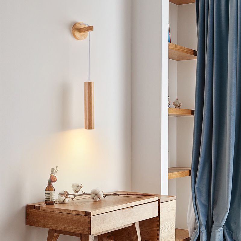 Modern Style Cylinder Shape Wall Light Wood 1 Light Sconces for Bedroom