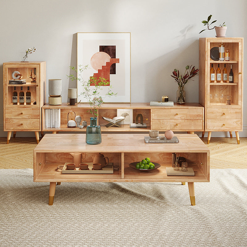 Modernist Cabinet Natural Finish Side Cabinet with Glass Paned
