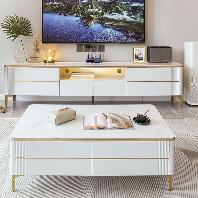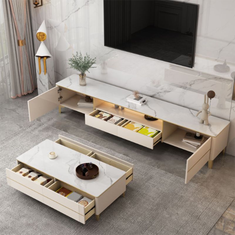 Open Storage TV Stand Console Stone TV Media Console with Drawers