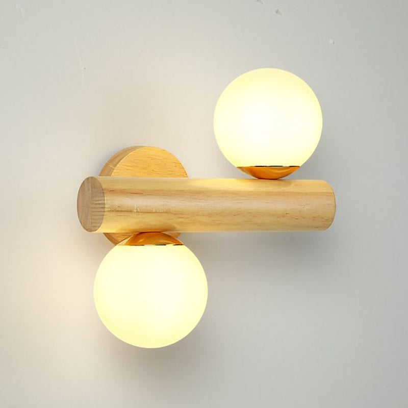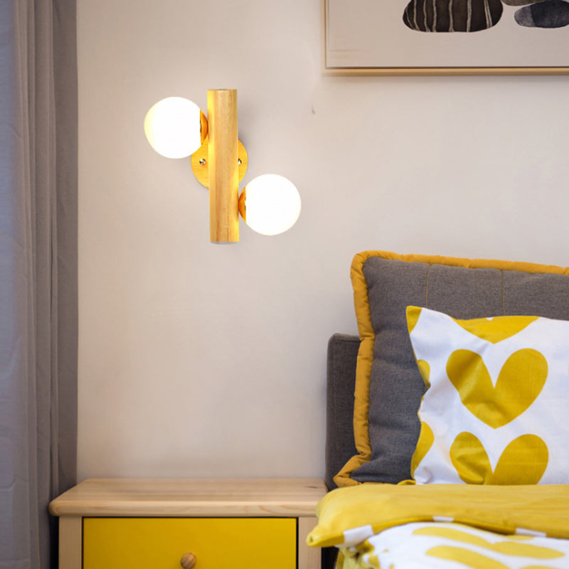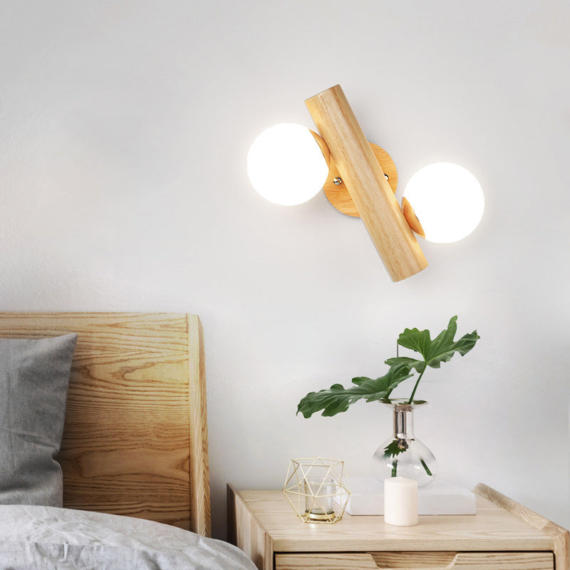 Rotatable Wood Flush Mount Lighting Contemporary Globe Wall Light for Bedroom