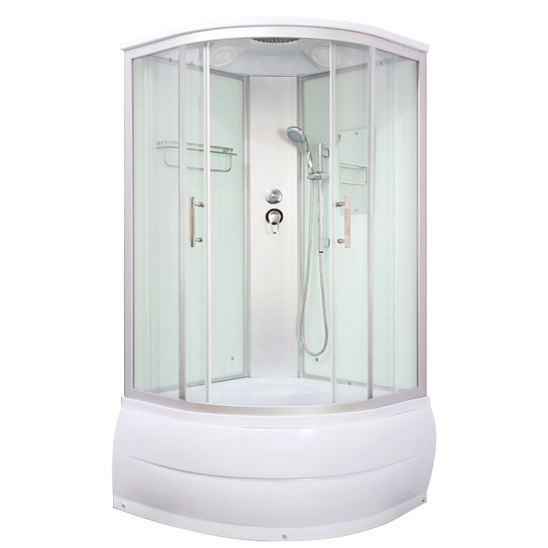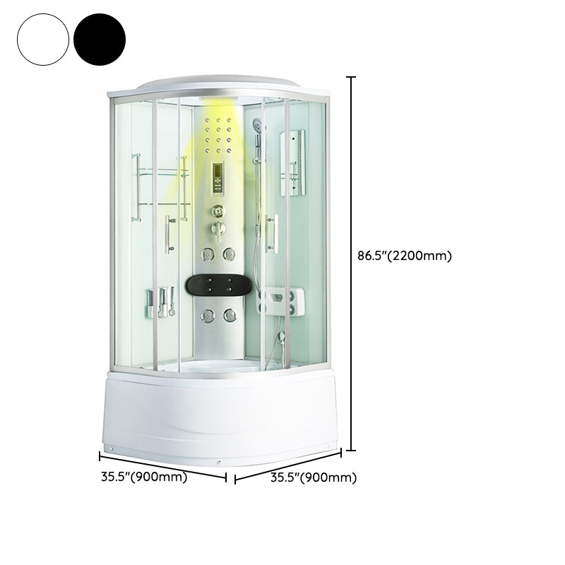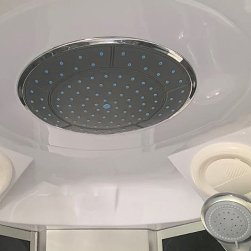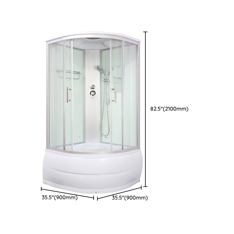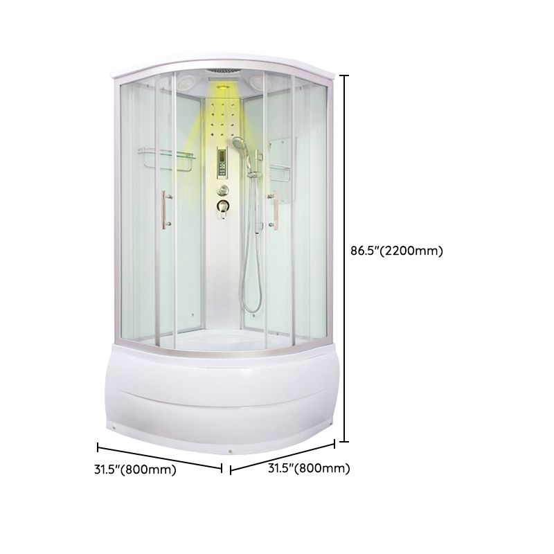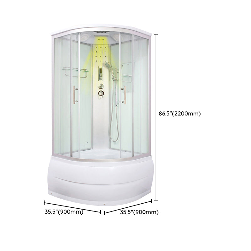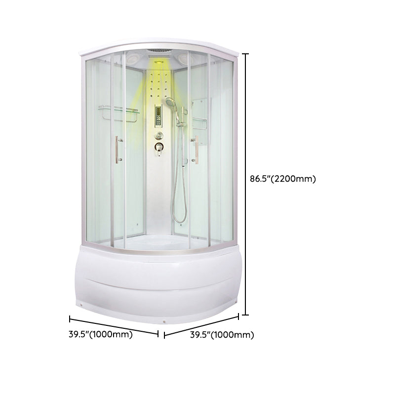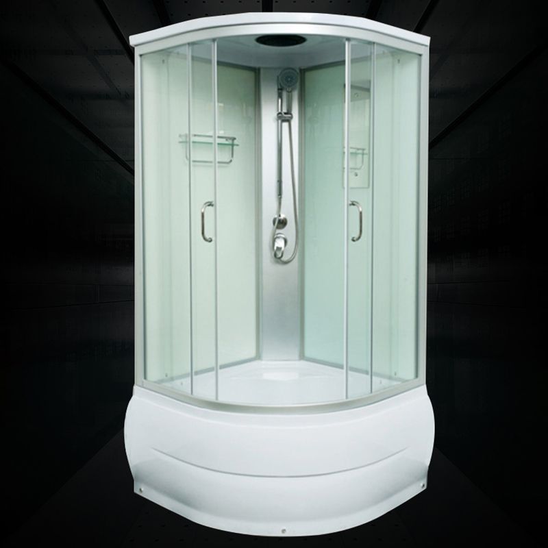 Round Shower Stall Double Sliding Shower Stall with White Base and Rain Shower