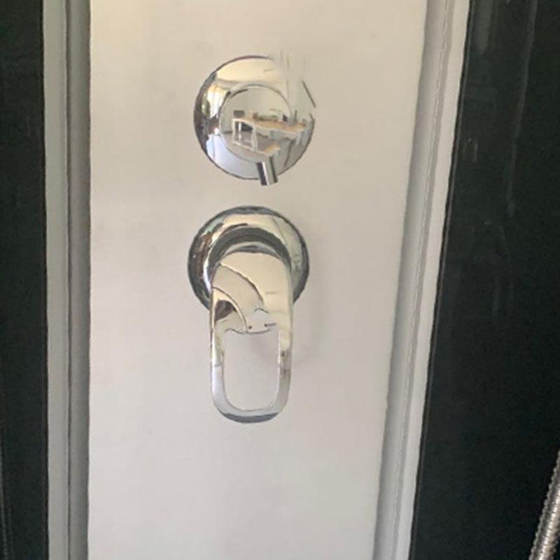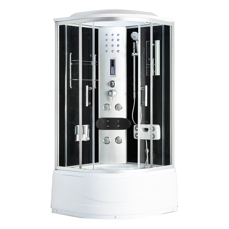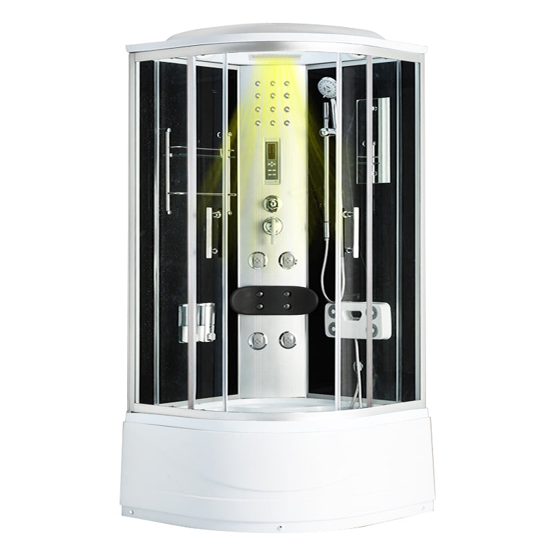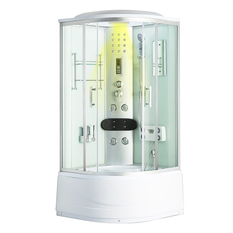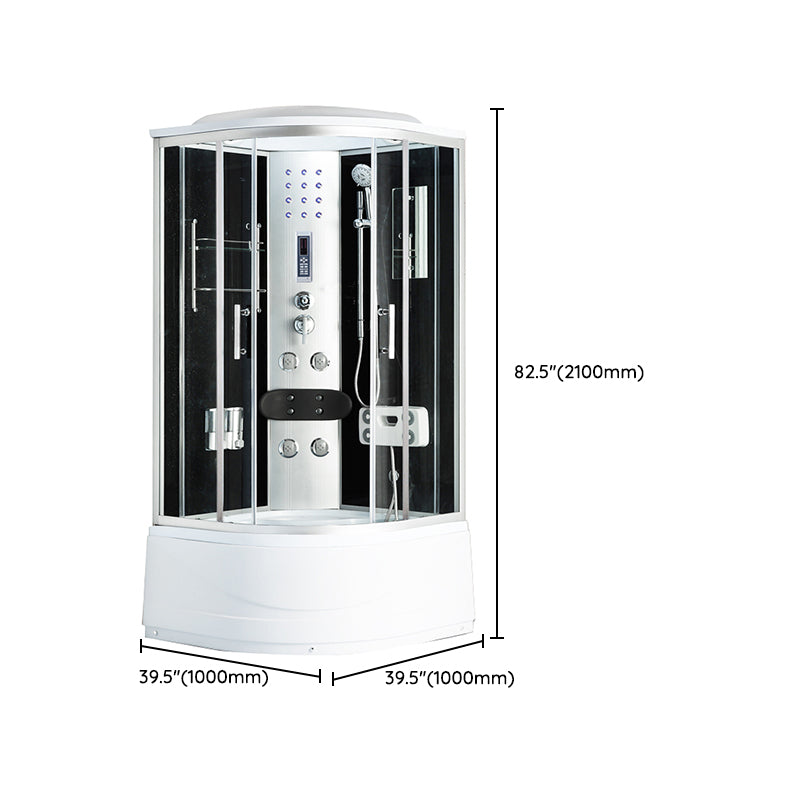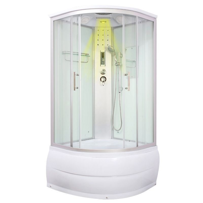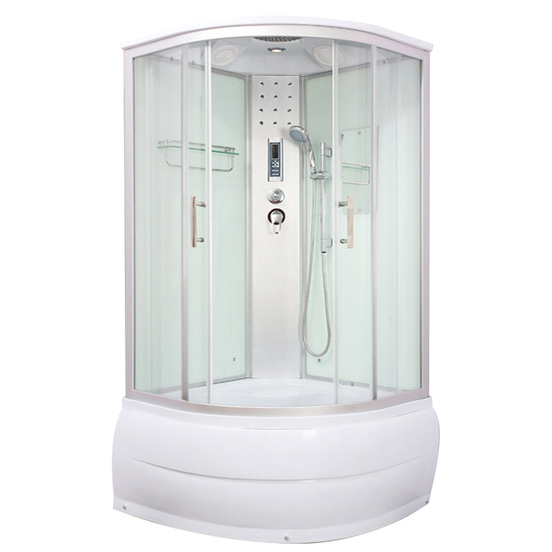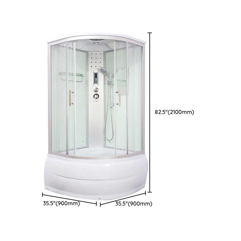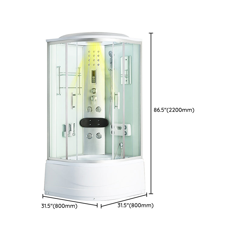 Round Shower Stall Double Sliding Shower Stall with White Base and Rain Shower