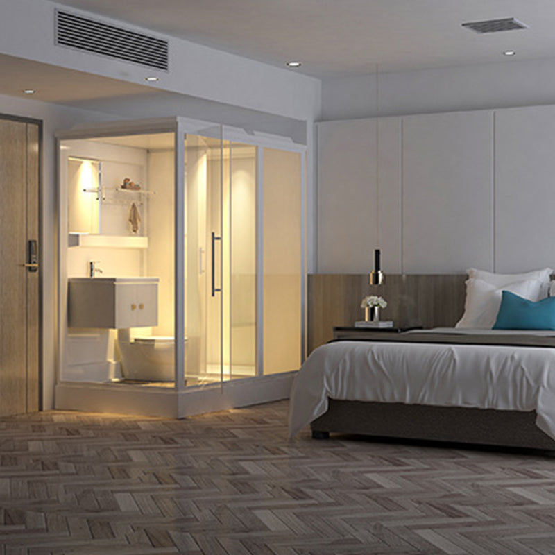 Single Sliding Shower Stall 91" H Framed Rectangle Shower Stall with White Base