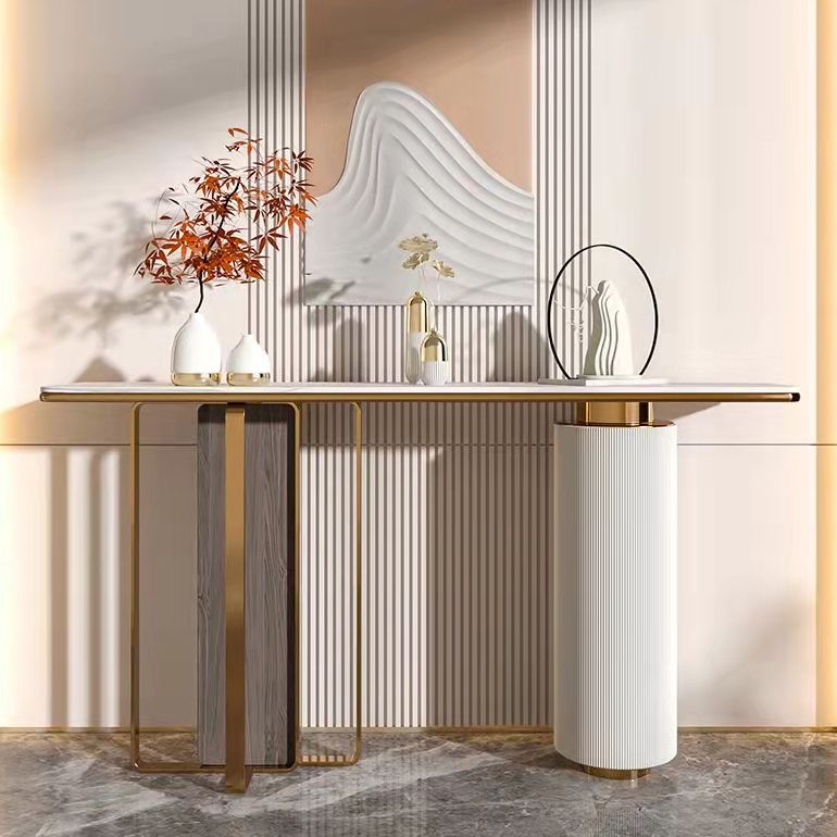 Stone Rectangle Console Table 31.5-inch Tall Glam Accent Table with Shelf