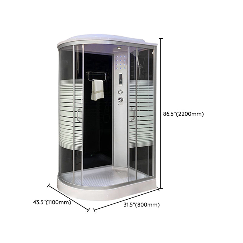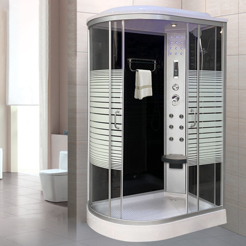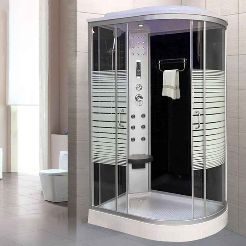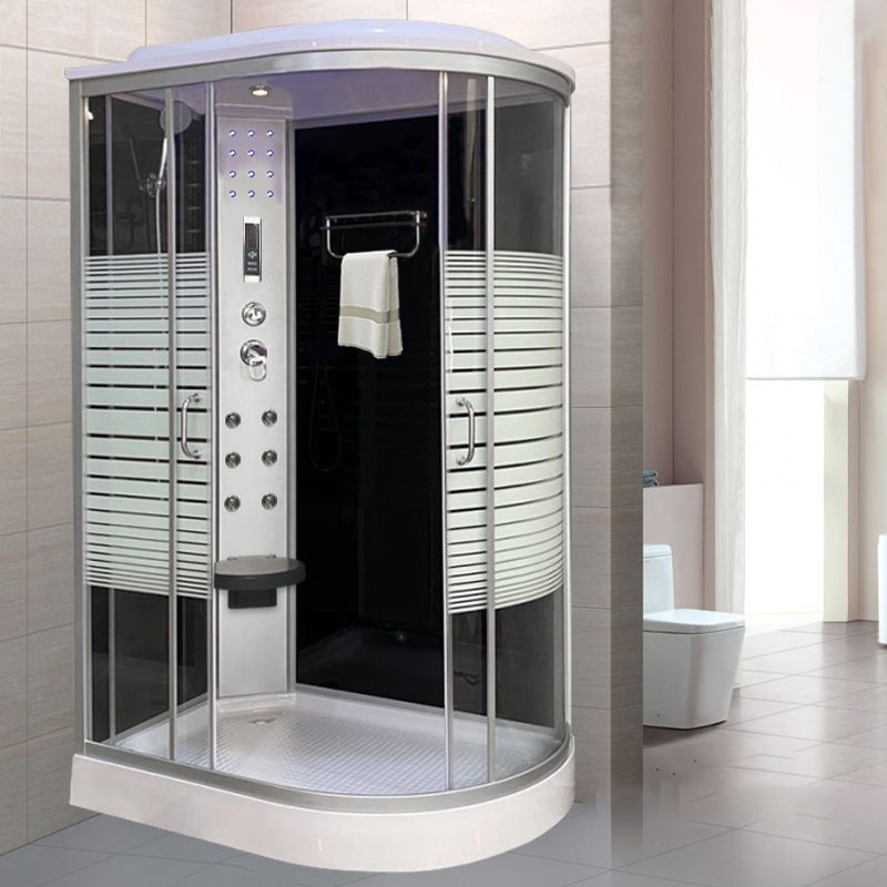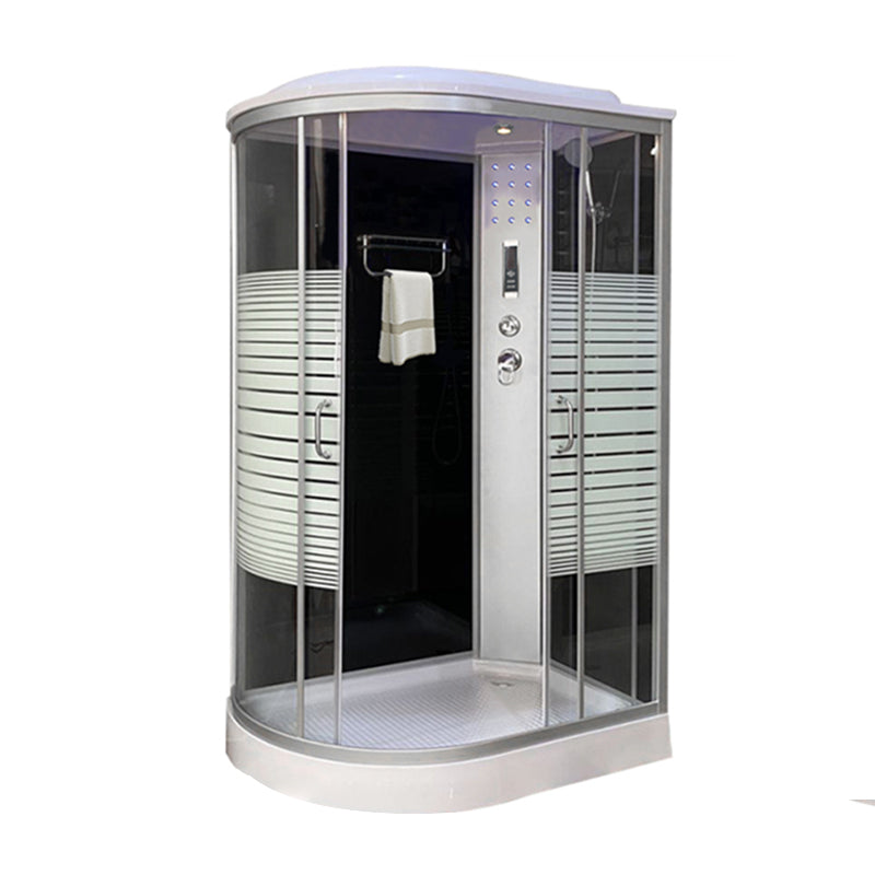 Striped Shower Stall Tempered Glass Shower Stall with Towel Bar and Rain Shower