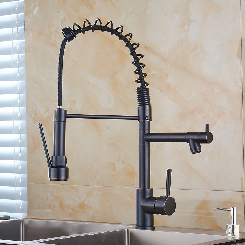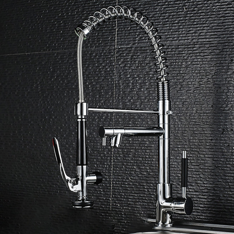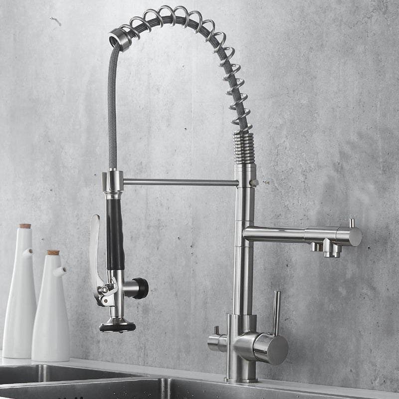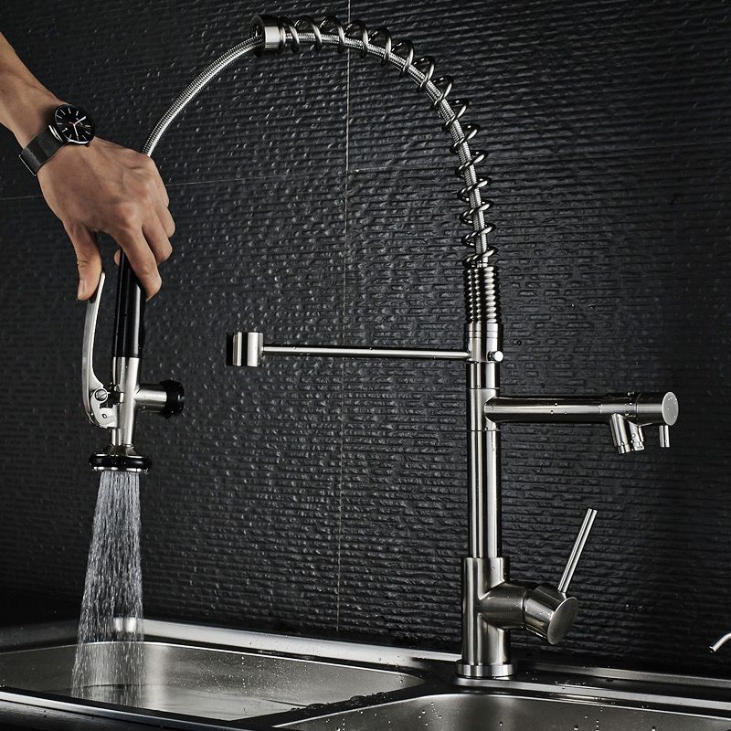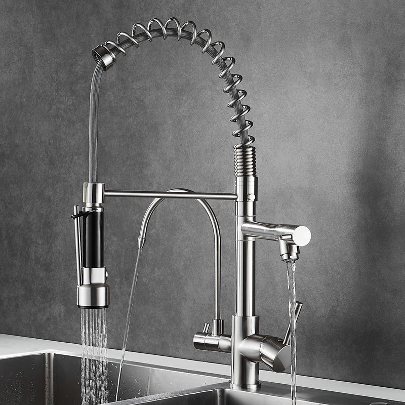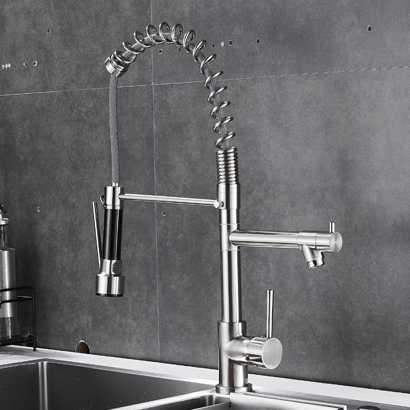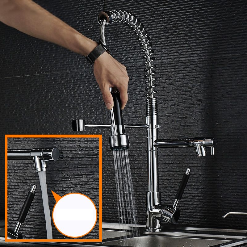 Swivel Spout Kitchen Sink Faucet Spring Spout with Pull Out Sprayer