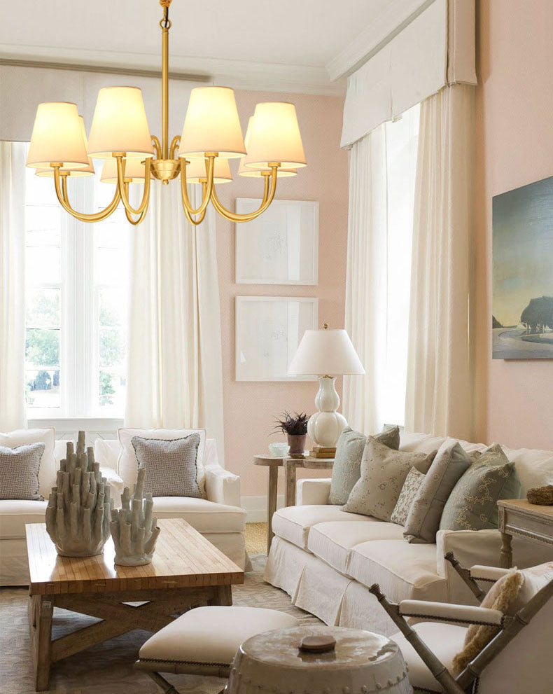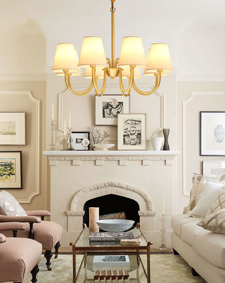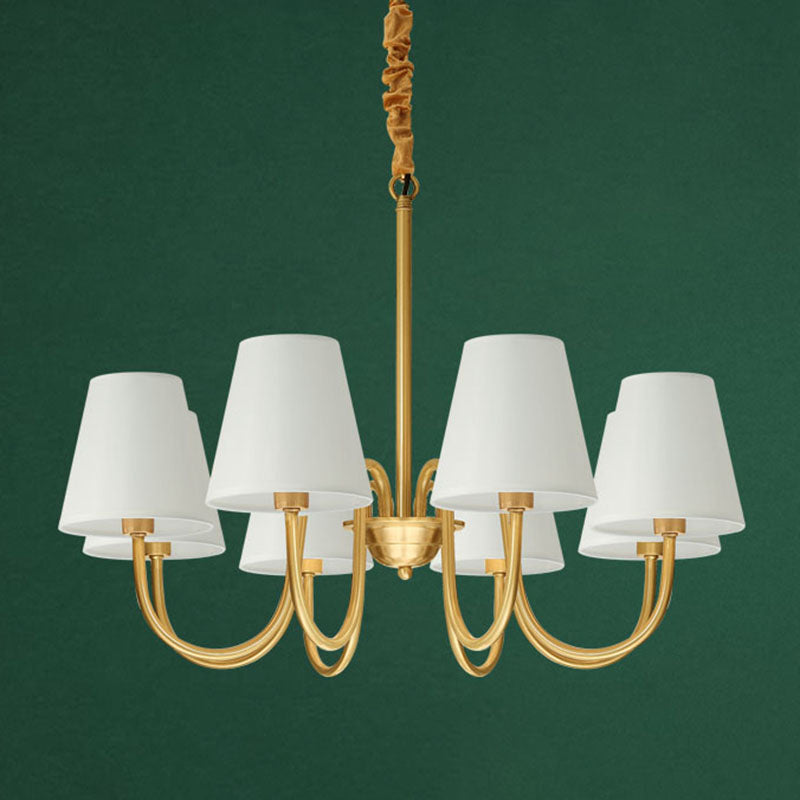 Traditional Classic Radial Pendant Light Copper Chandelier with White Fabrics Shade