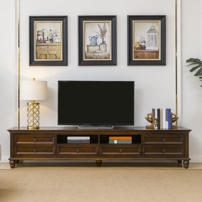 Traditional TV Media Console Solid Wood TV Console with 6 Drawers