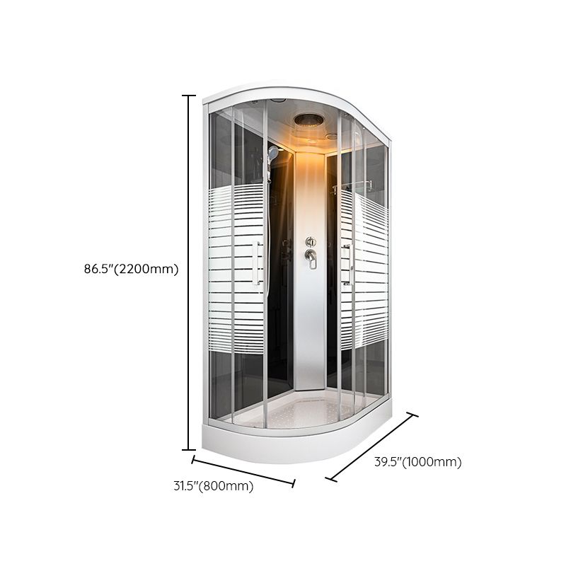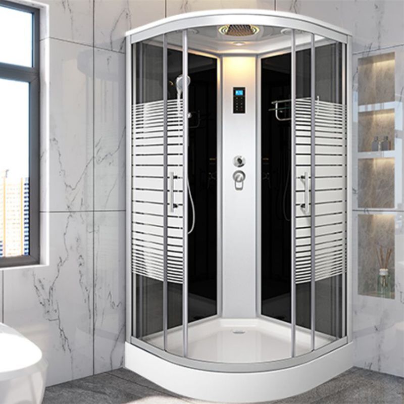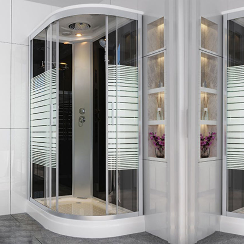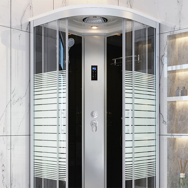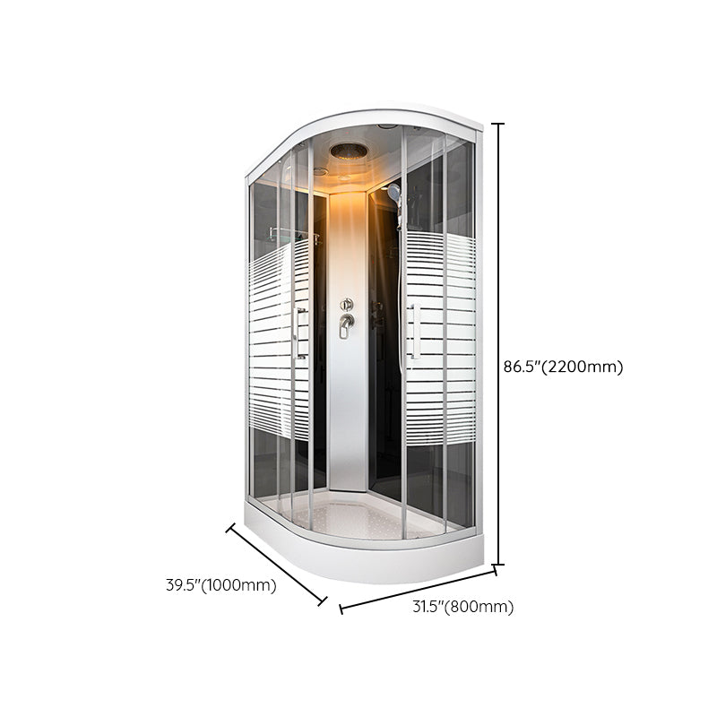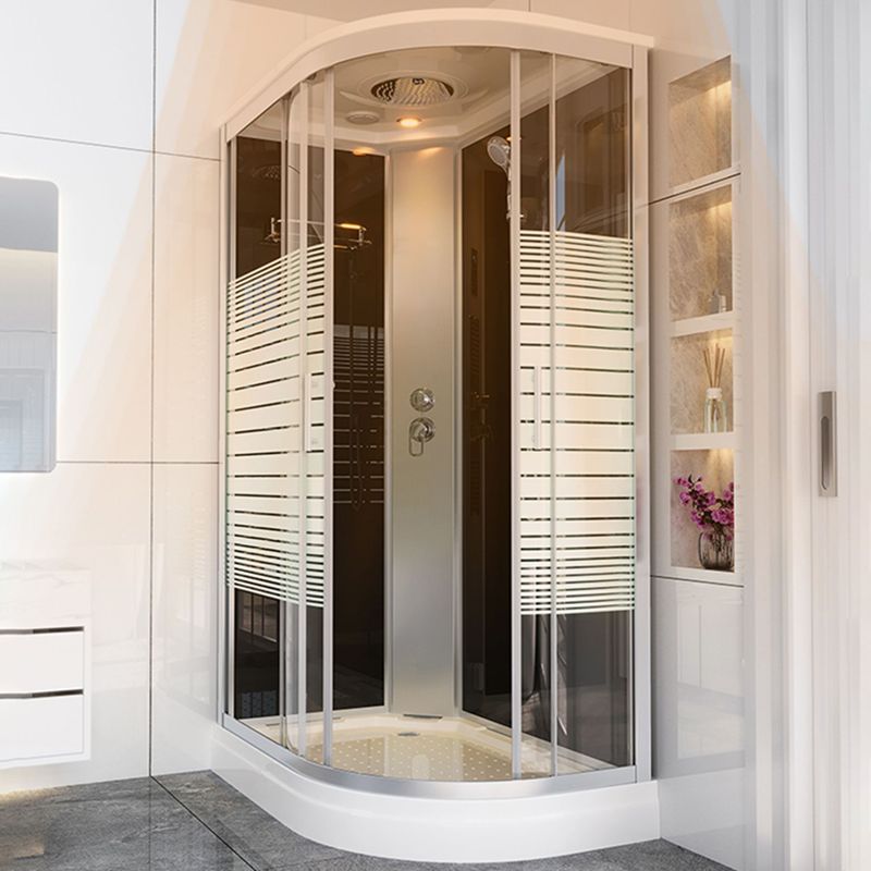 White Rounded Shower Stall with Shower Base Tempered Glass Shower Stall