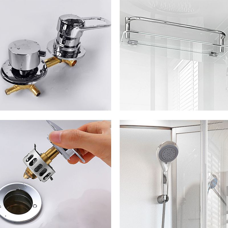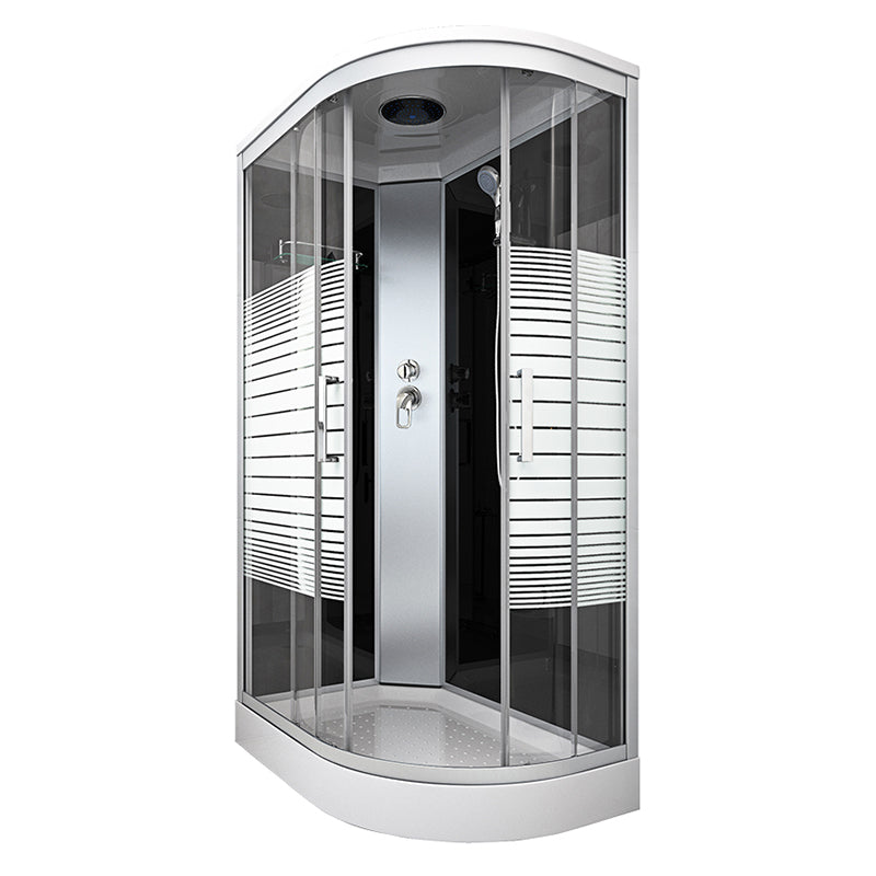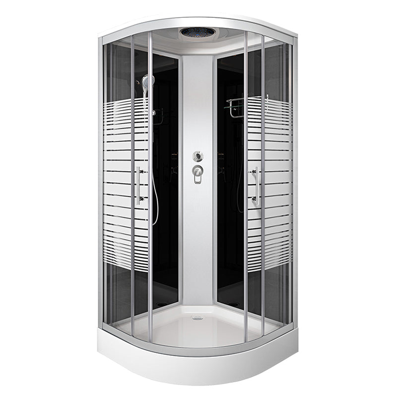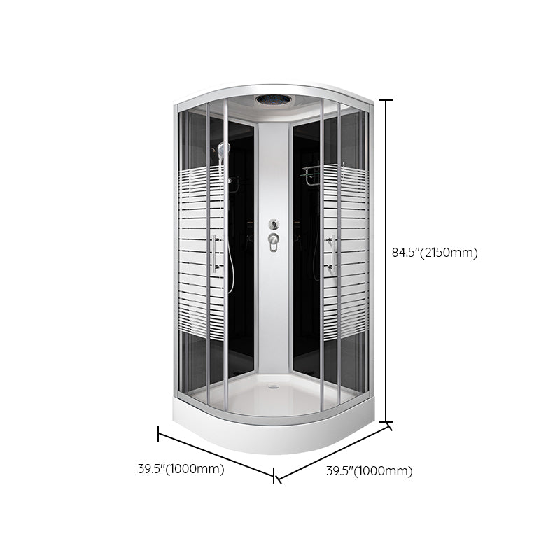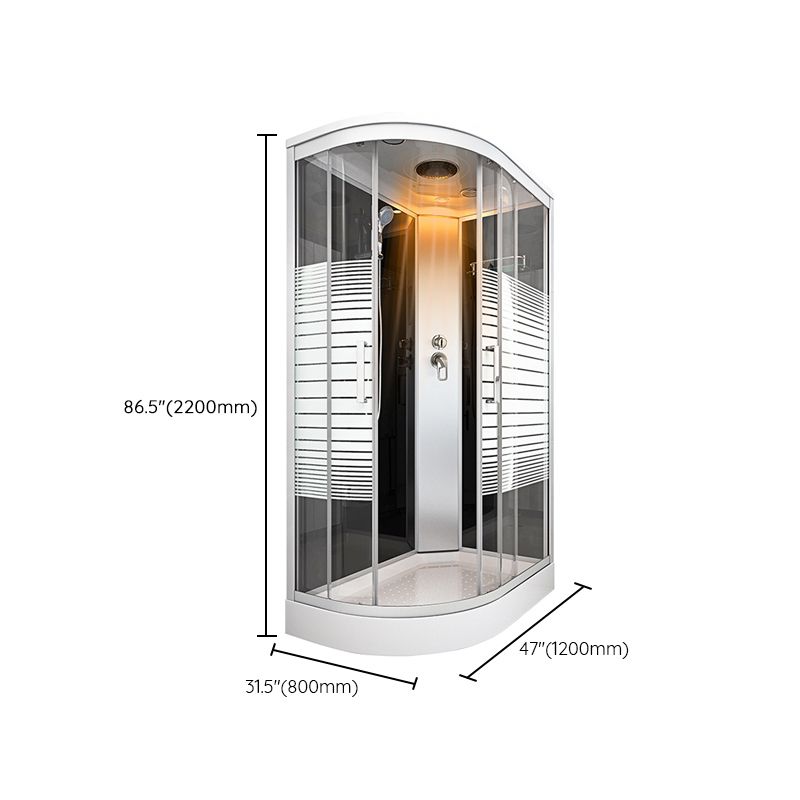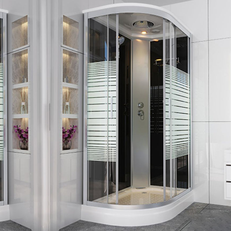 White Rounded Shower Stall with Shower Base Tempered Glass Shower Stall