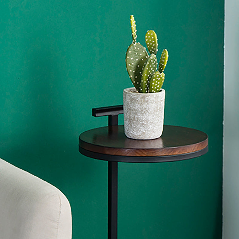 Wood 27.55-inch Tall Side Table Round Walnut Brown End Table
