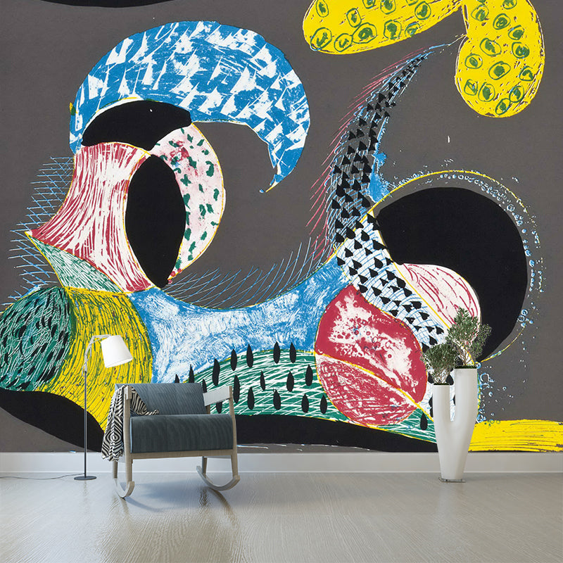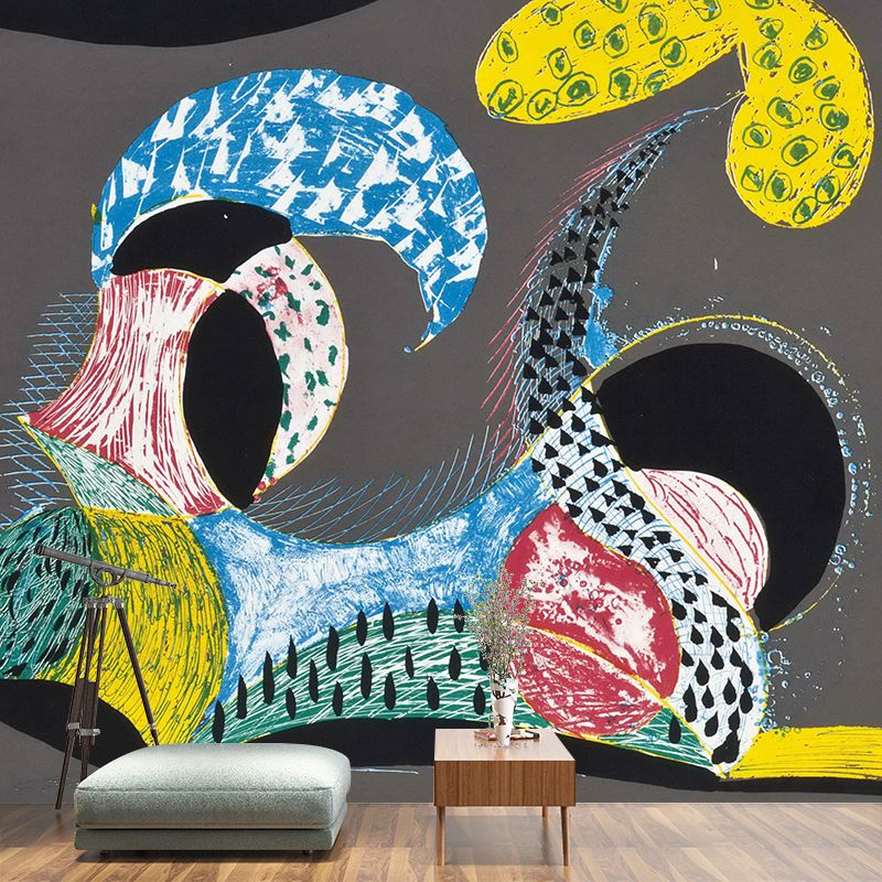 Abstract Landscape Wallpaper Murals Pop Art Non-Woven Material Wall Decor in Blue-Grey-Yellow