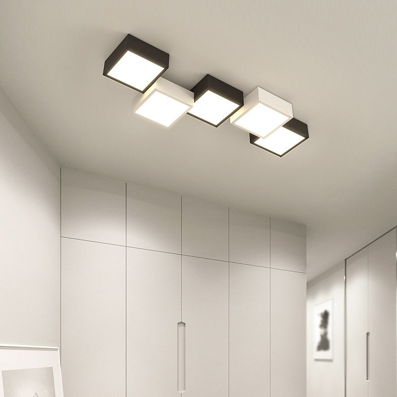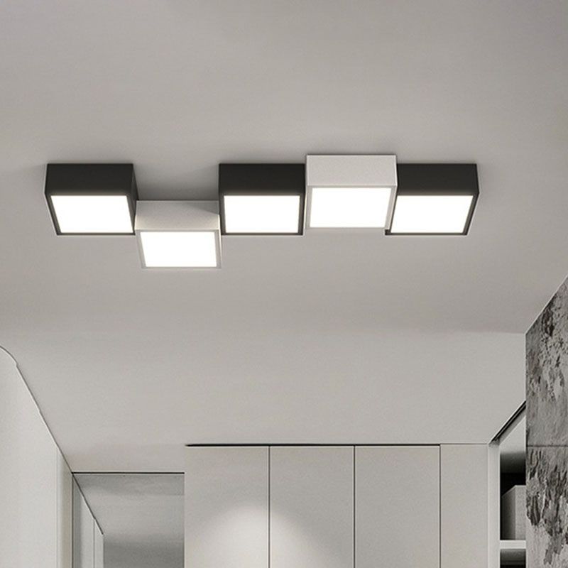 Black and White Ceiling Flush Geometric Iron Flush Mount Lighting