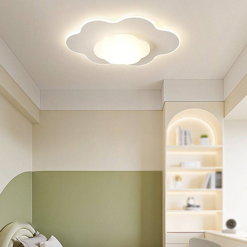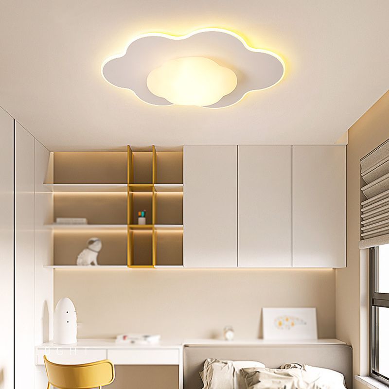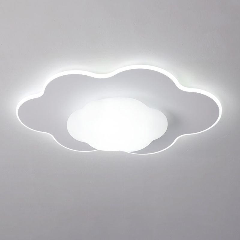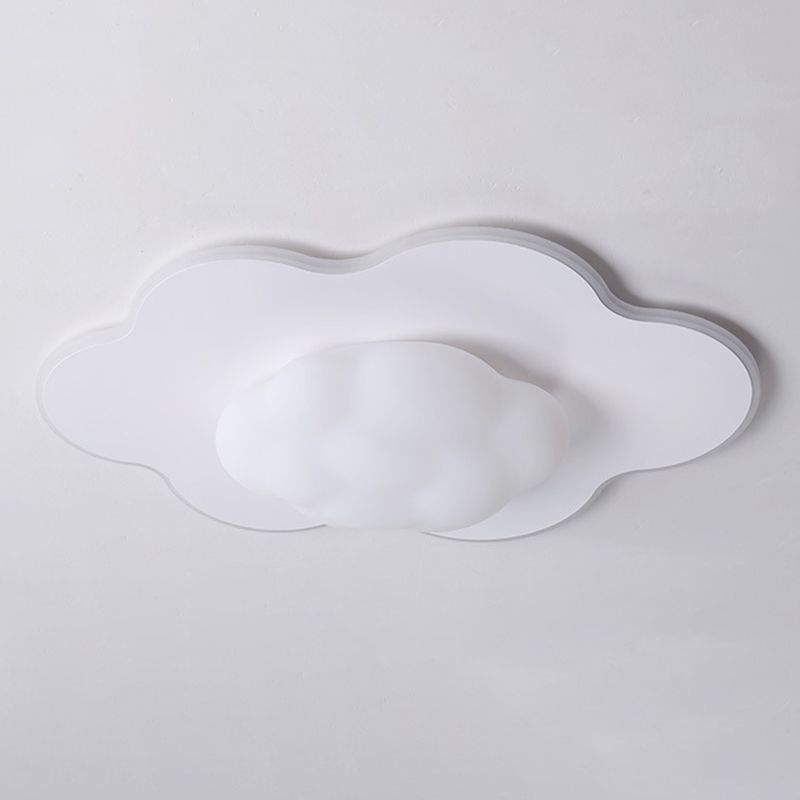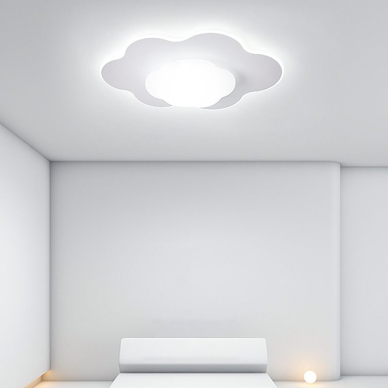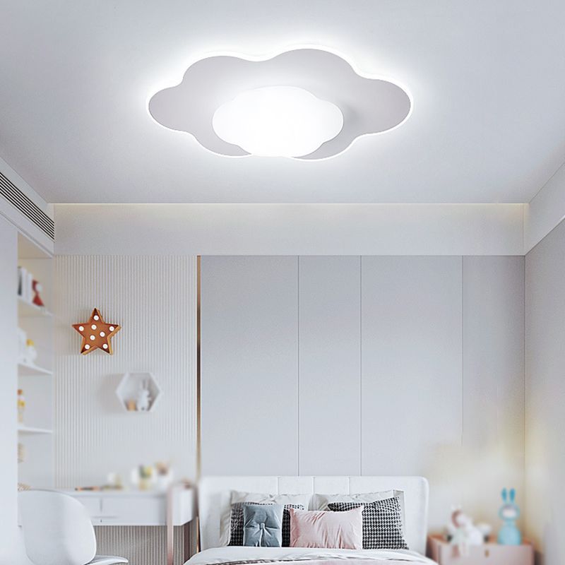 Cloud Shape LED Ceiling Flush Kids Style Metal & Acrylic Flush Mount in White