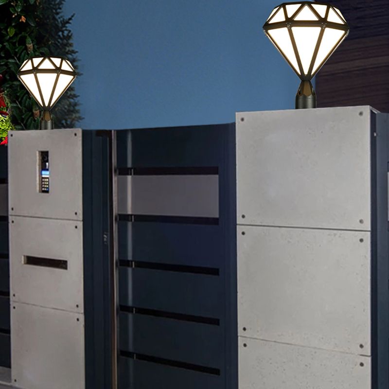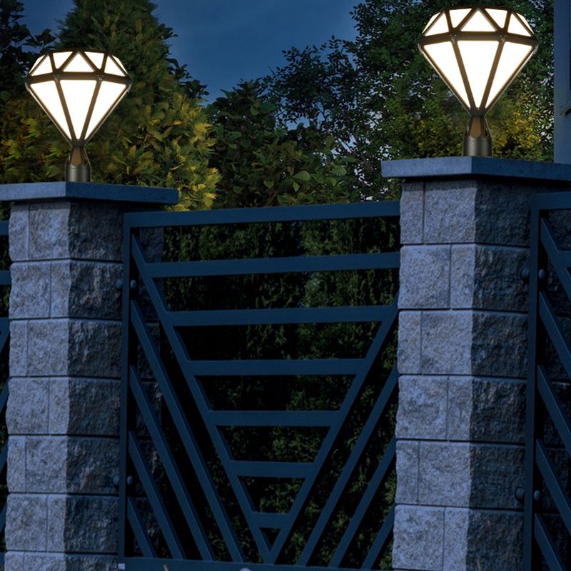 Contemporary Metal Pillar Lamp Diamond Shape Outdoor Waterproof Light with Plastic Shade