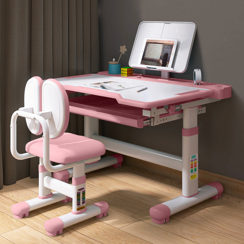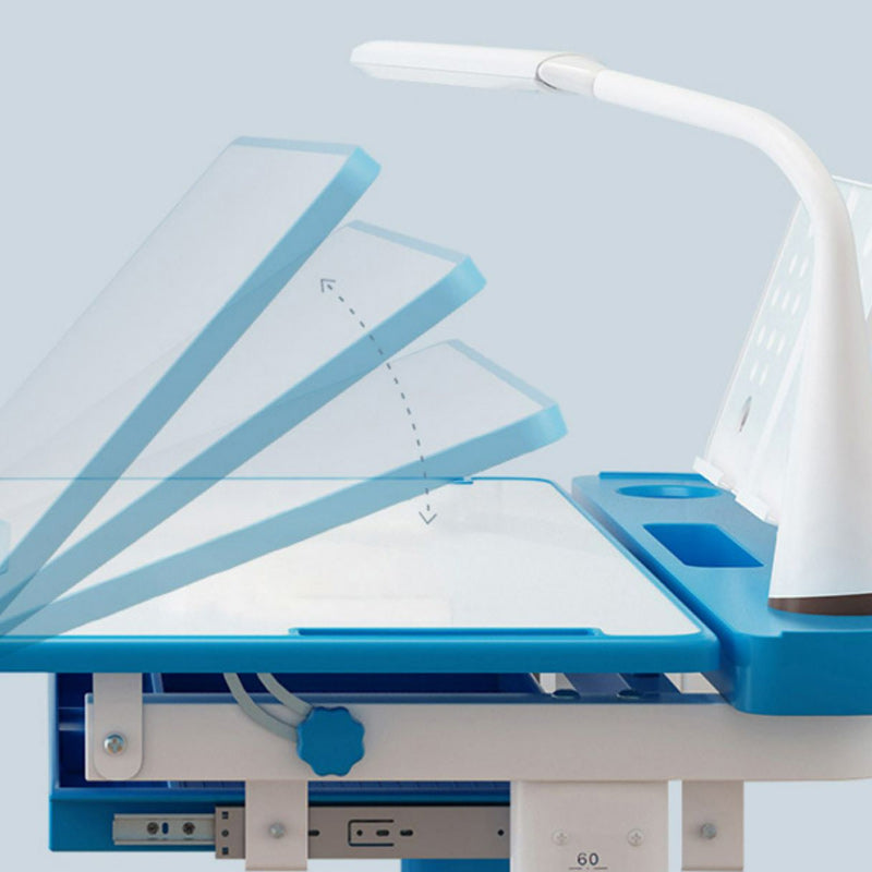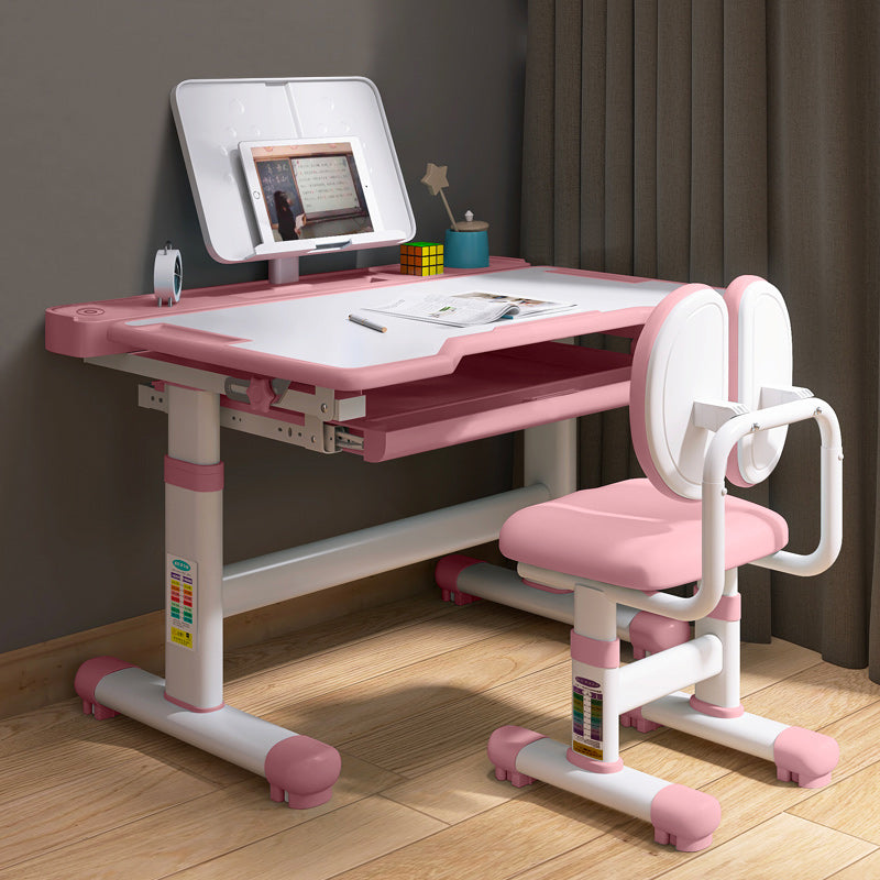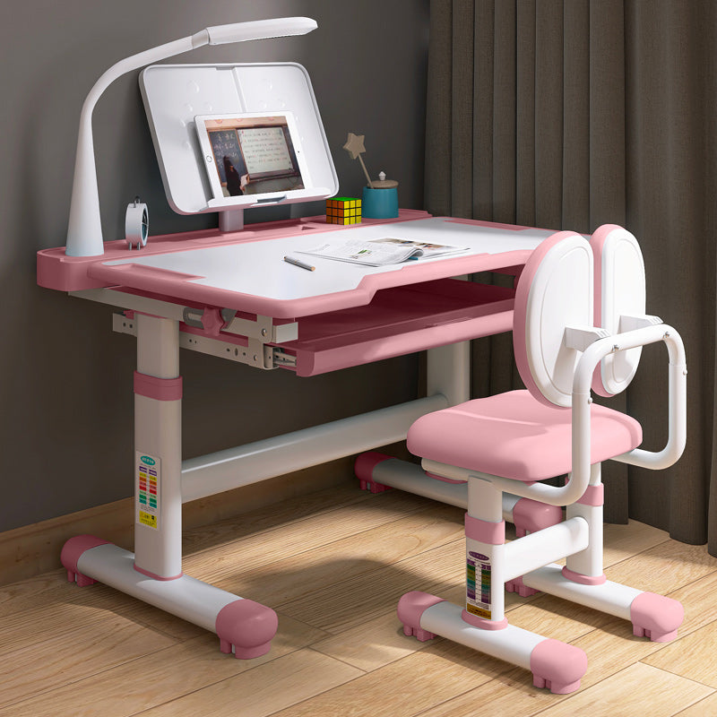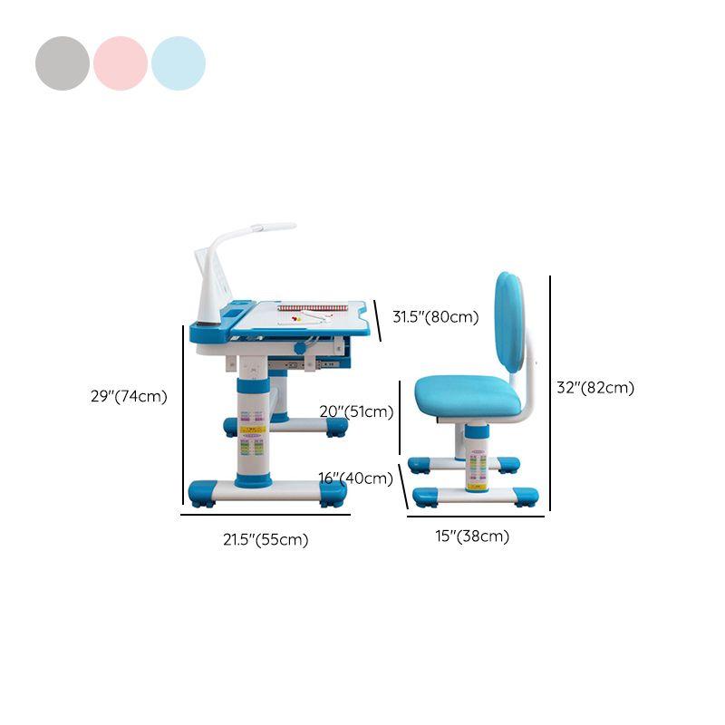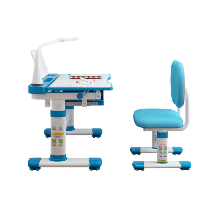 Desk with Chair Set in White with Storage Drawer Adjustable Student Table