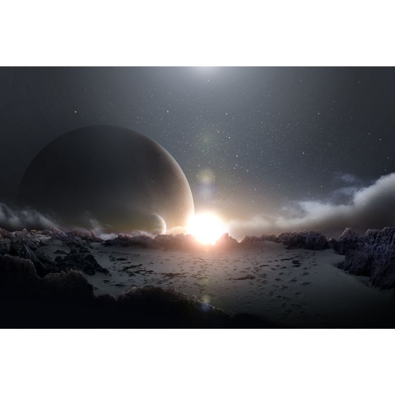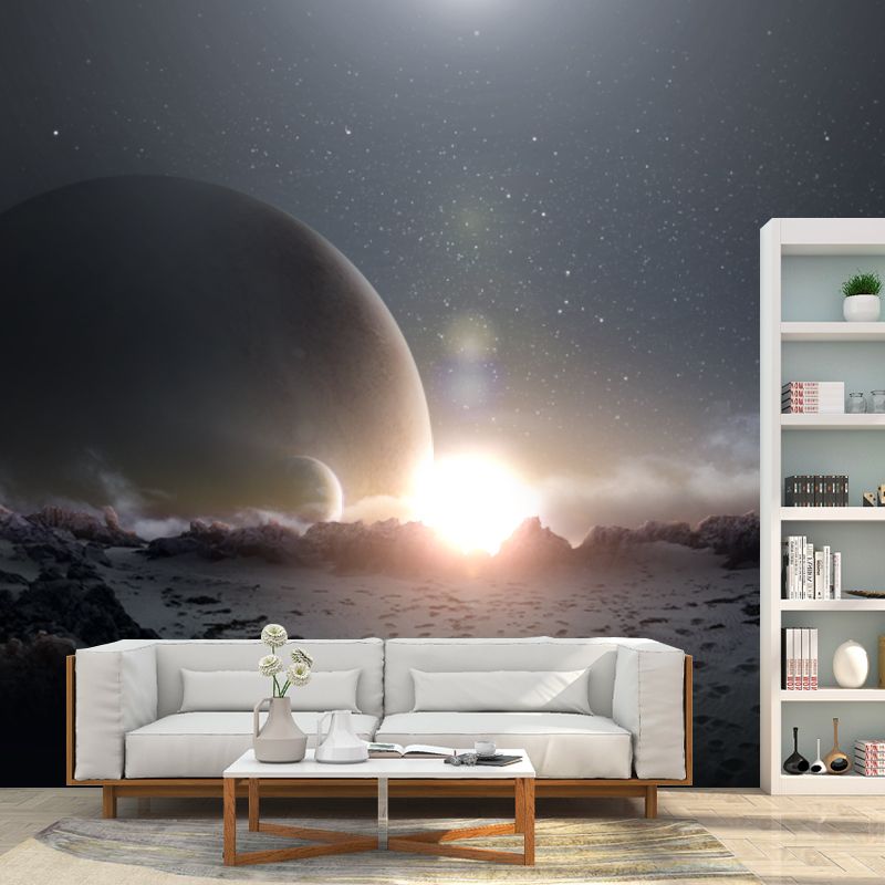 Fictional Sunrise at Wilds Mural Blue-Brown Boys Bedroom Wall Covering, Custom Print