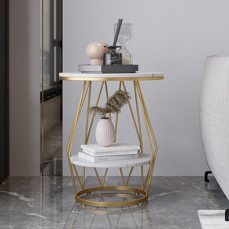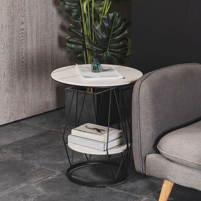 Frame Round Stone Side Table 19.7" W x 19.7" D x 23.6" H End Table with Storage Shelf