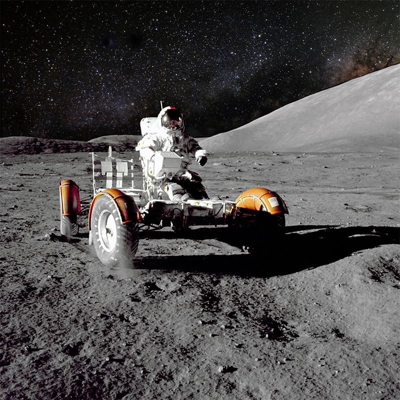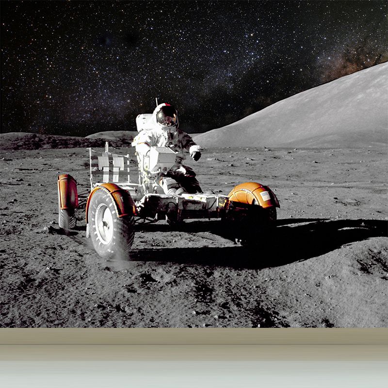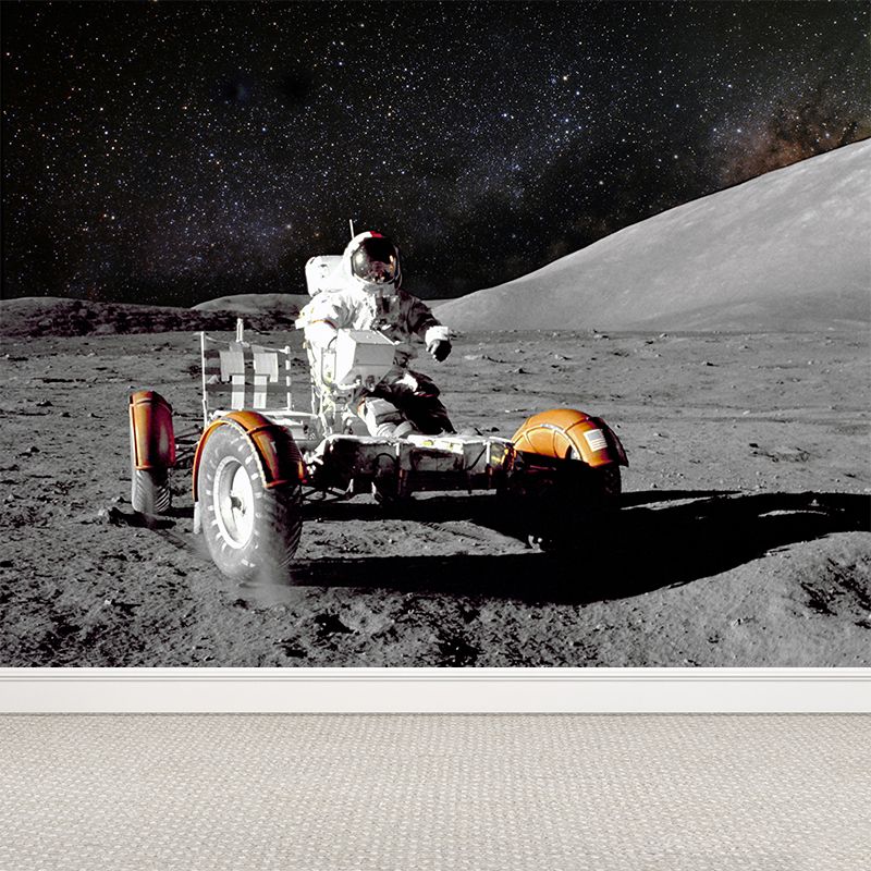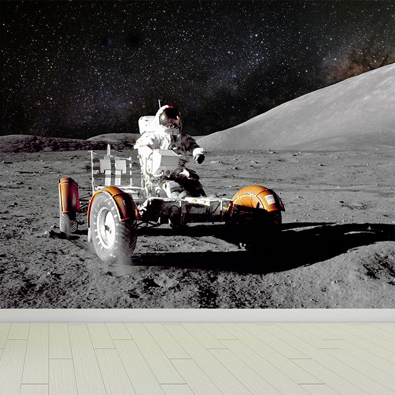 Futuristic Astronaut Mural Non-Woven Texture Stain-Proof Black Wall Art for Bedroom