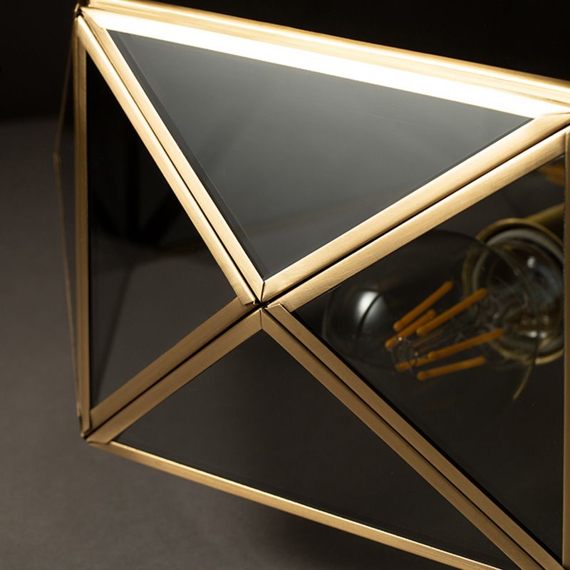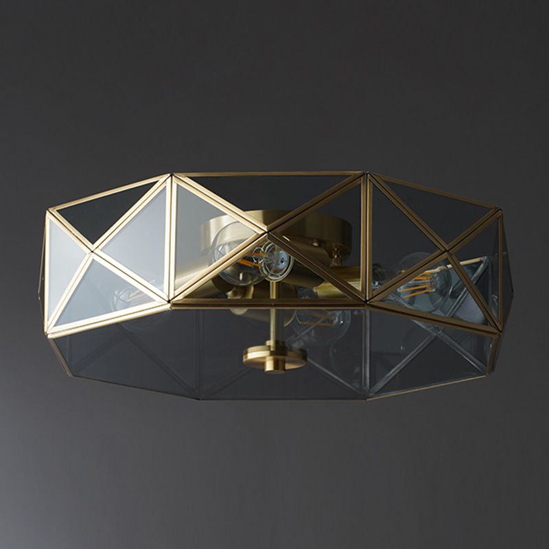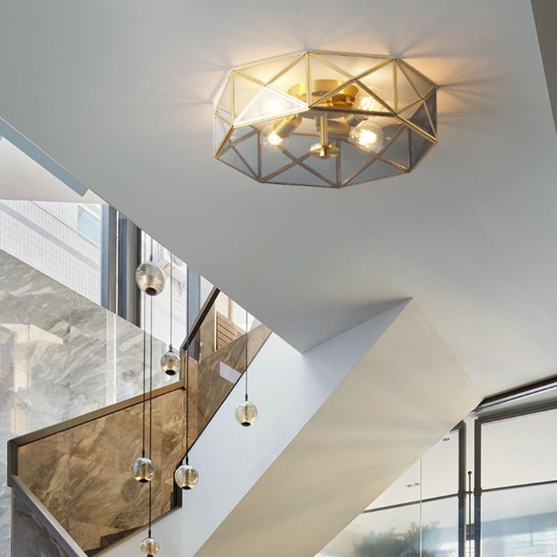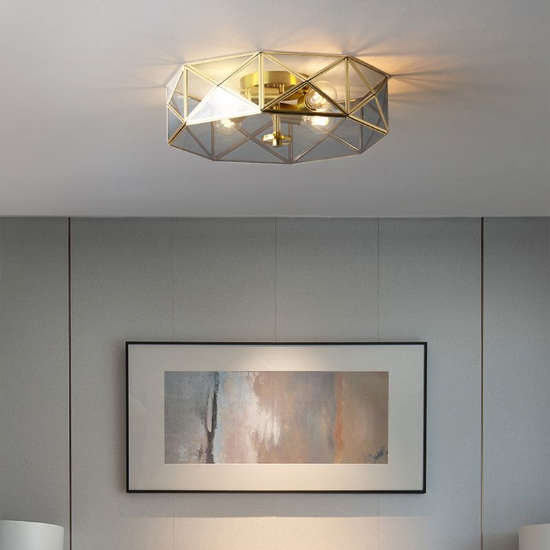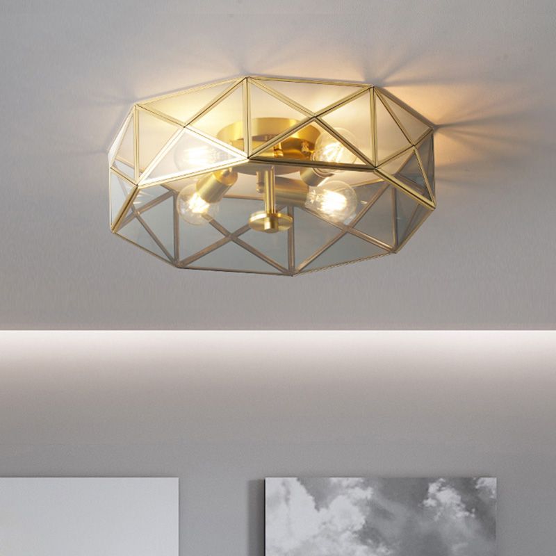 Glass Gold Ceiling Lamp Drum Shape Simplistic Flush Ceiling Light Fixture