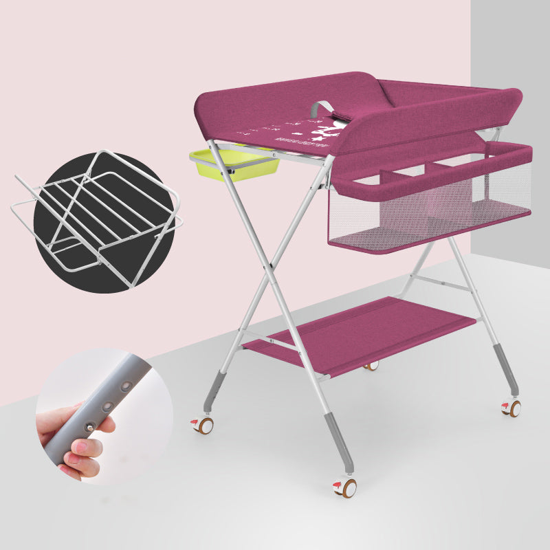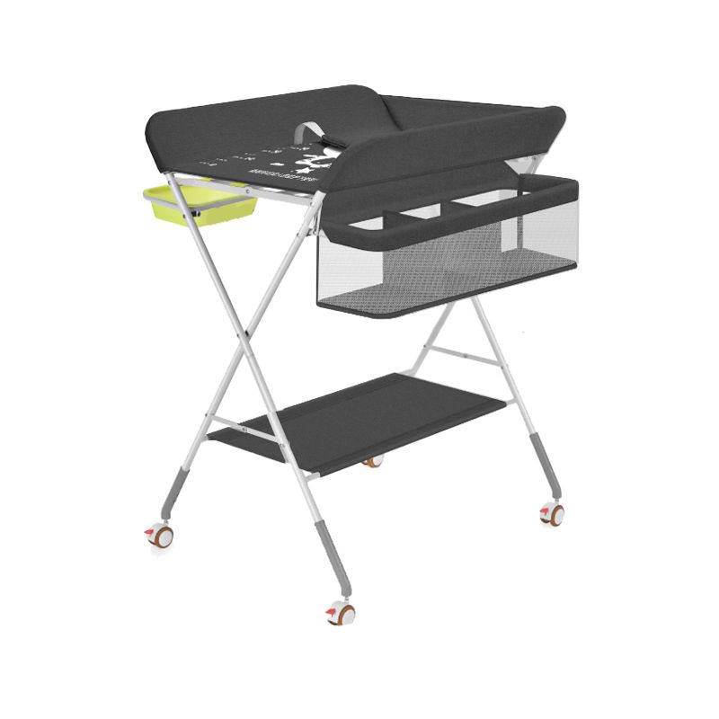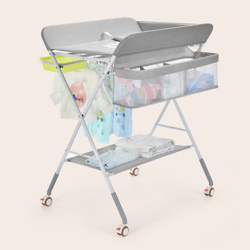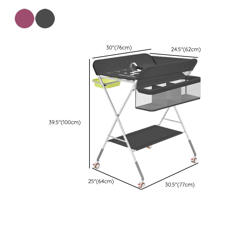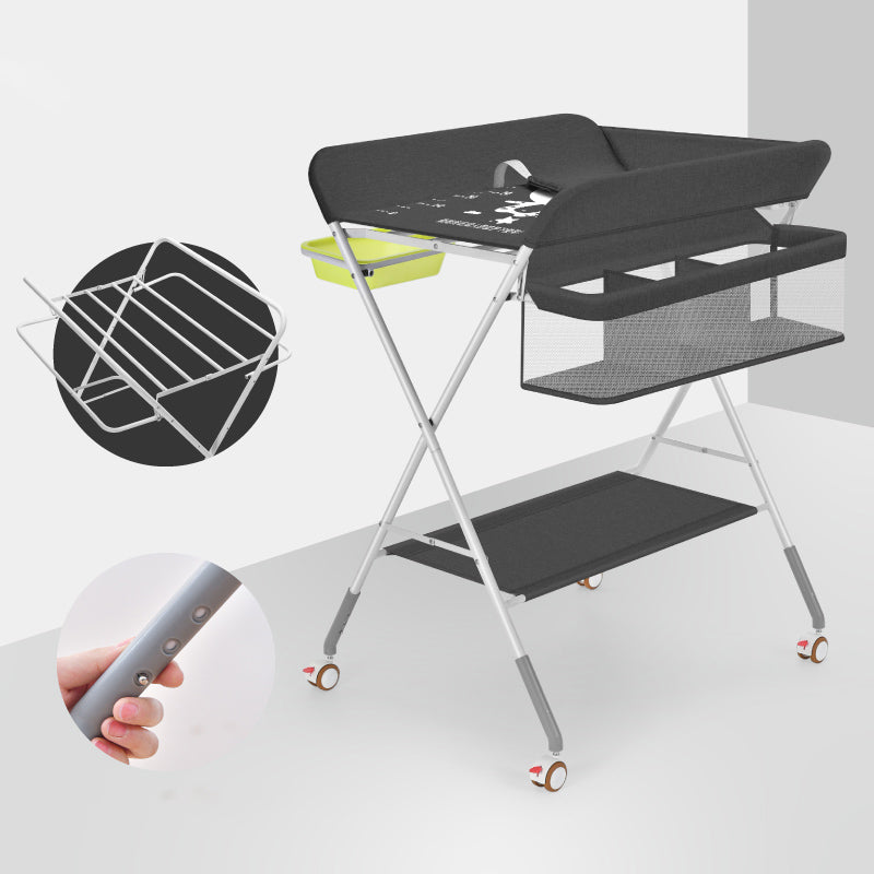 Grey Metal Changing Table with Basket, Portable Changing Table