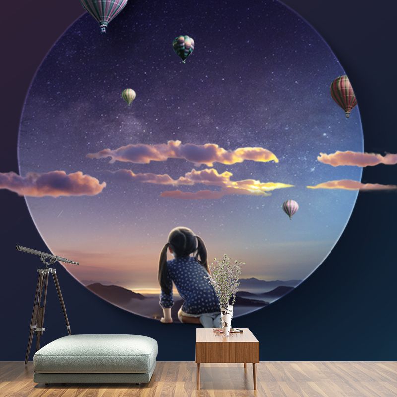 Hot Air Balloon Wall Mural Decal Sci-Fi Stain Resistant Bedroom Wall Covering, Made to Measure