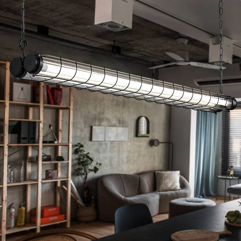 Industrial Style Hanging Lamp Iron Frame Island Light Fixture for Living Room