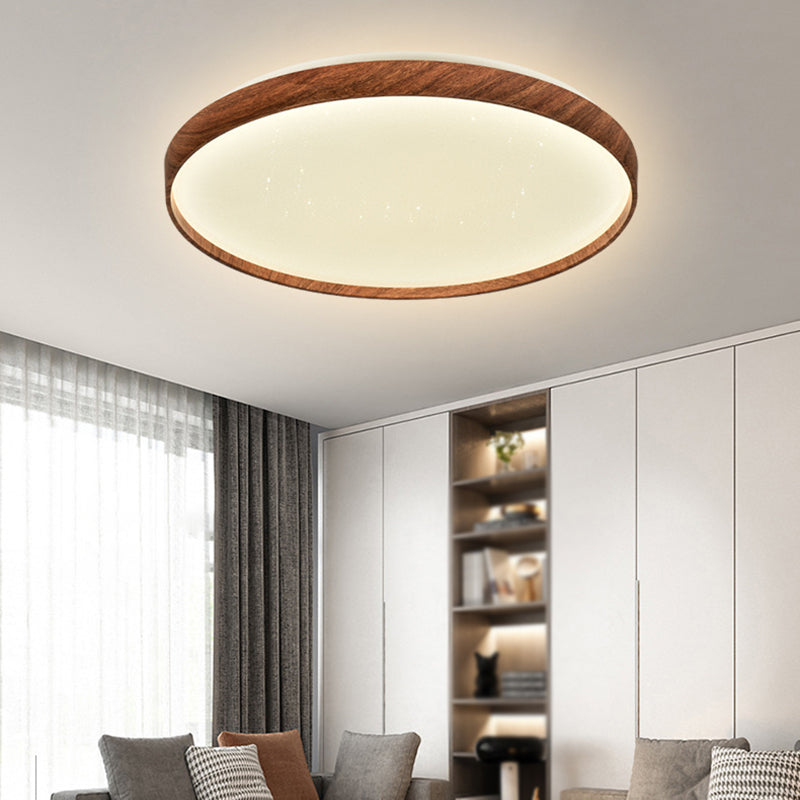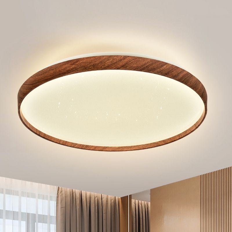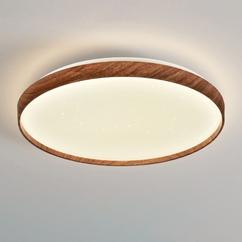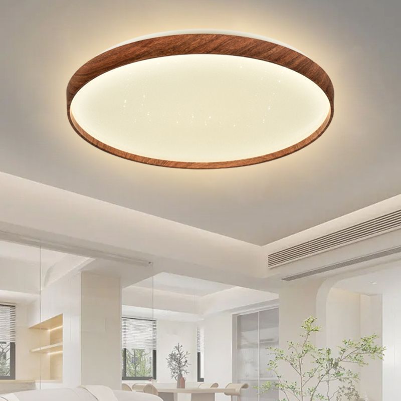 Iron LED Ceiling Flush Modern Round Flush Mount in Wood Color