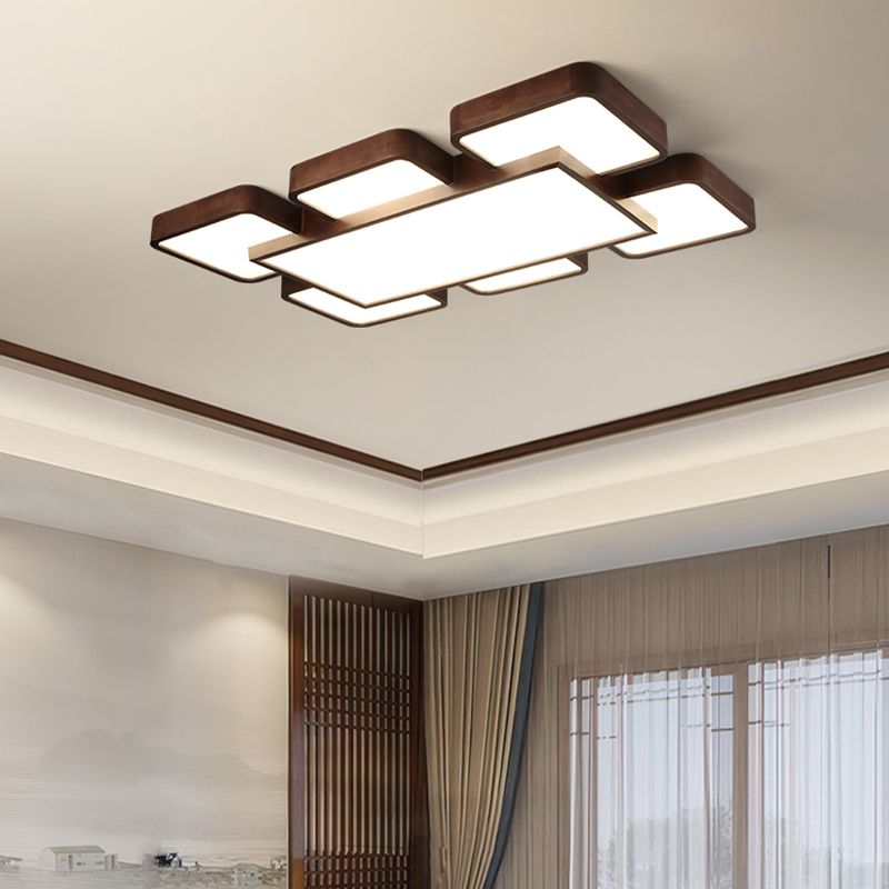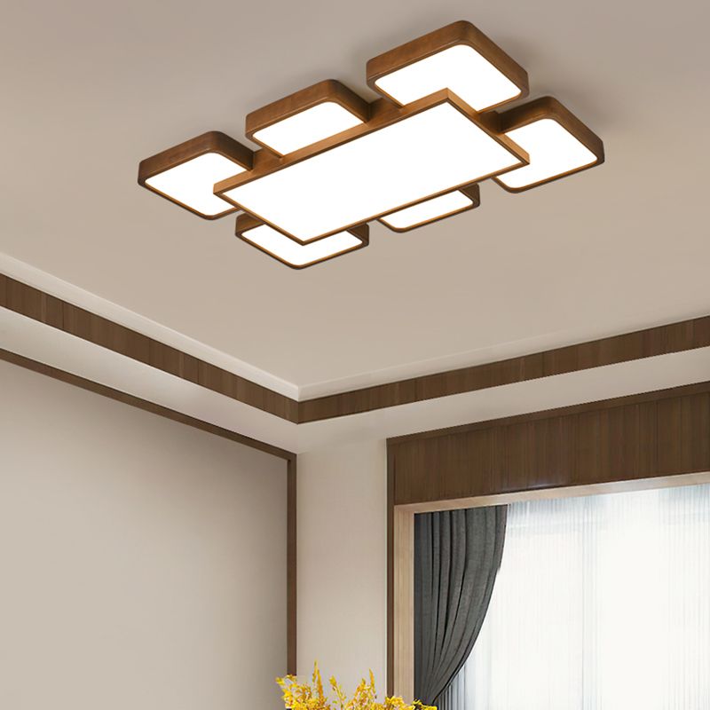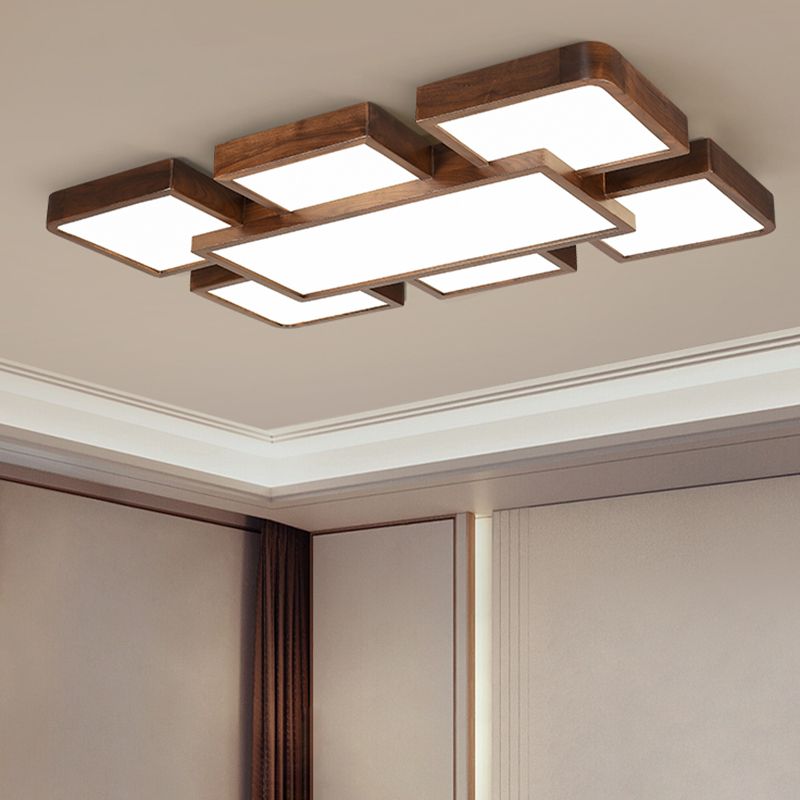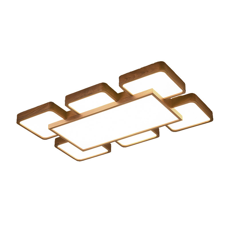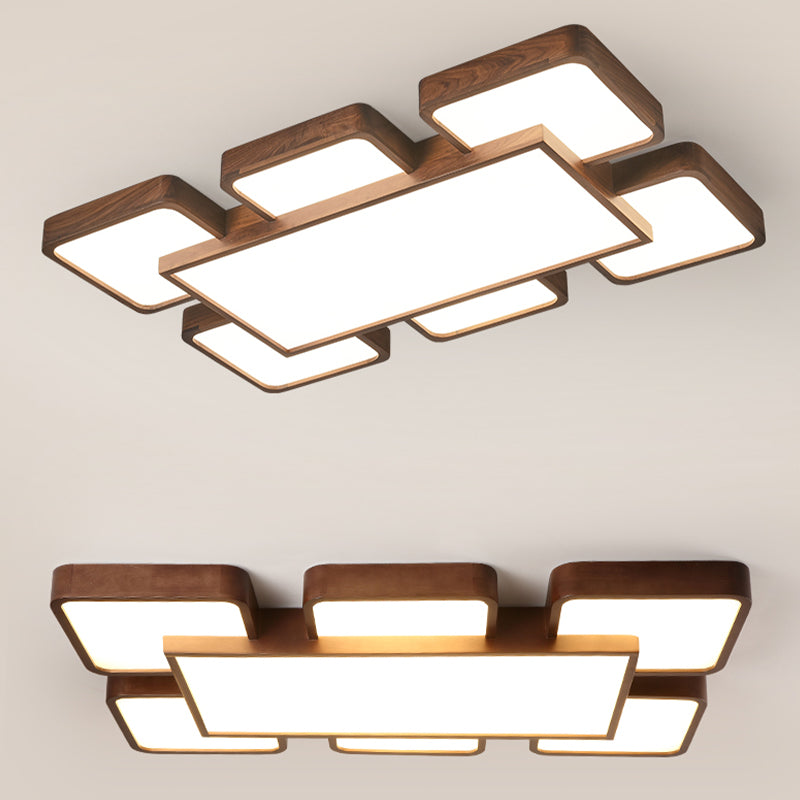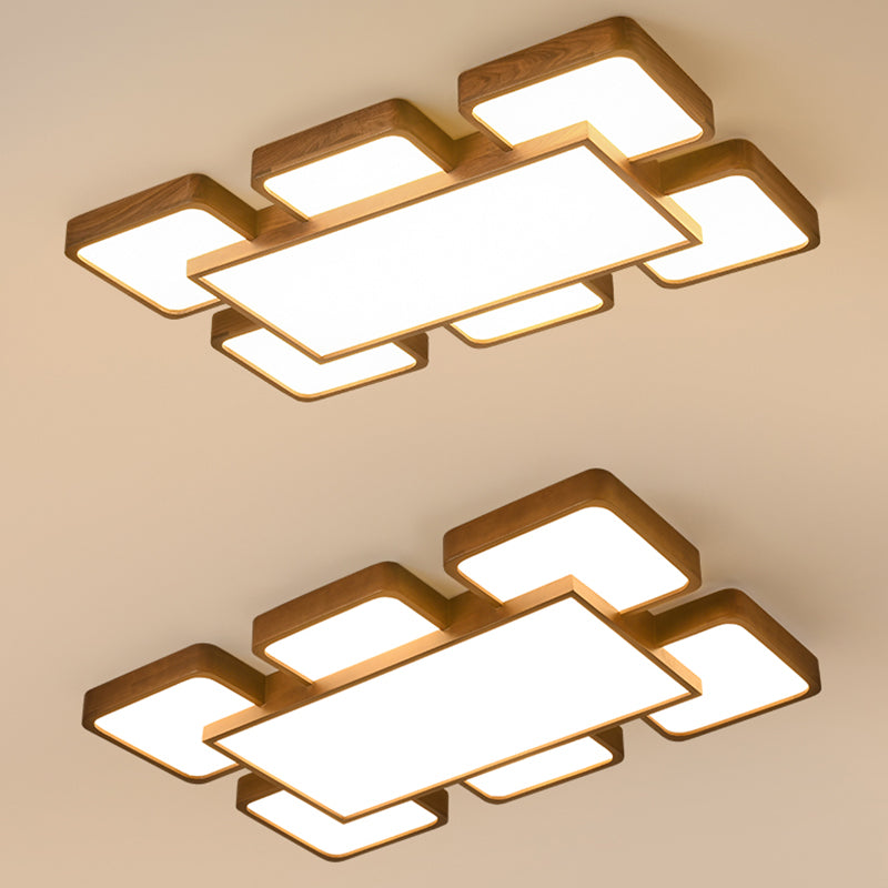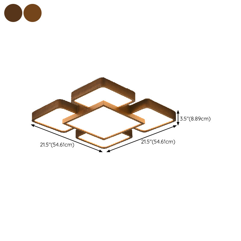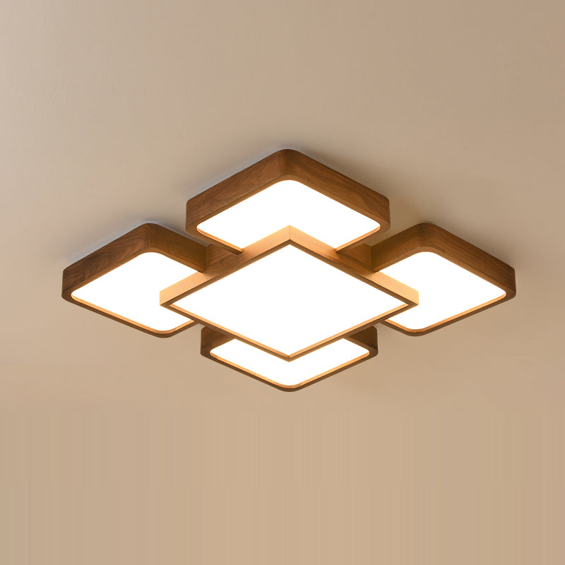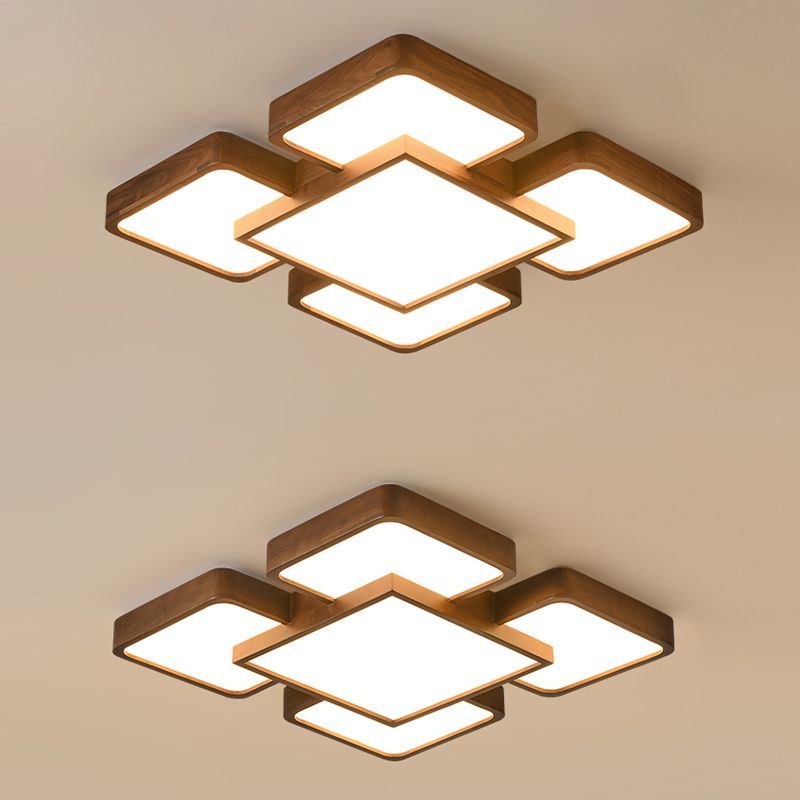 LED Modern Wood Flush Mount Geometric Shape Ceiling Lamp with Acrylic Shade for Bedroom