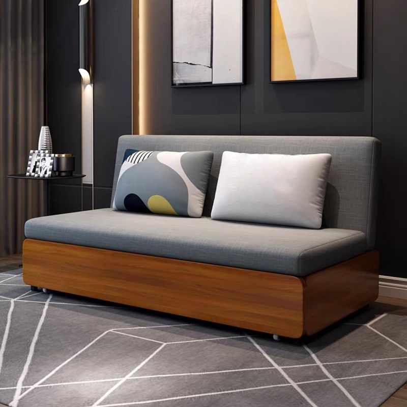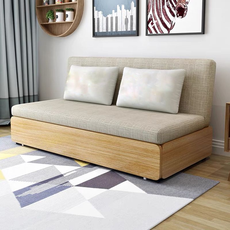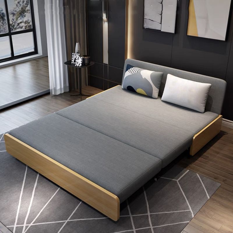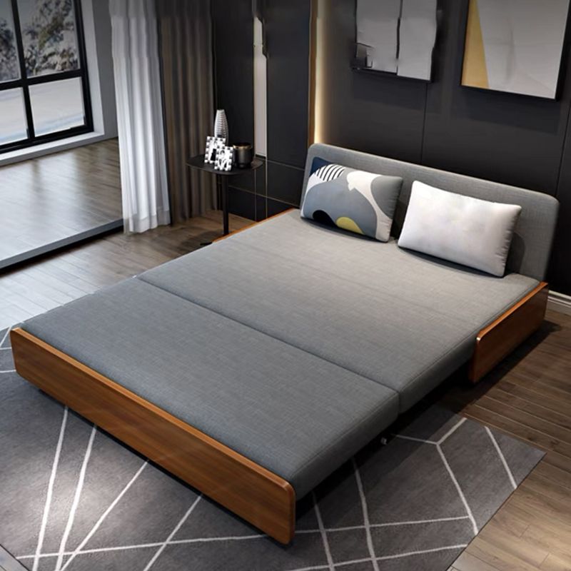 Modern and Contemporary Wood Fabric Mattress Upholstered No Theme Bed