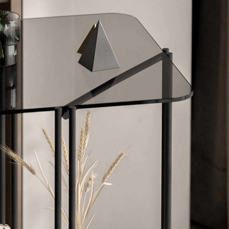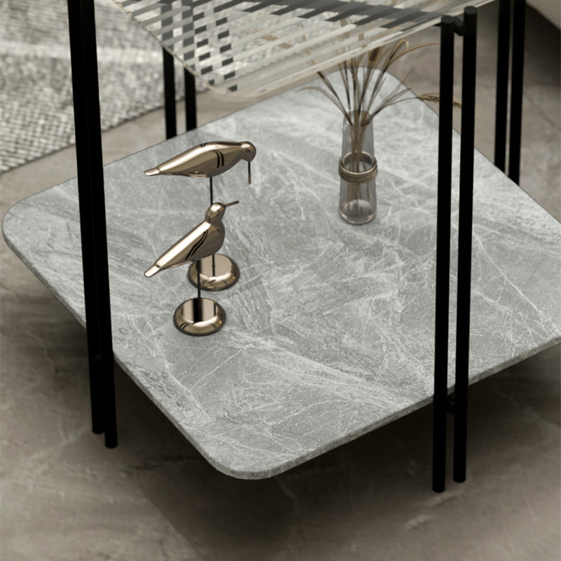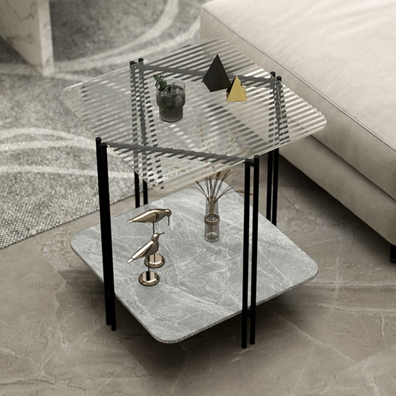 Modern Square Glass Side Table 23.62" Tall 4 Legs Shelf Included End Table