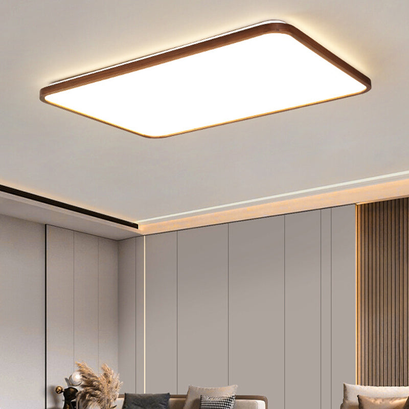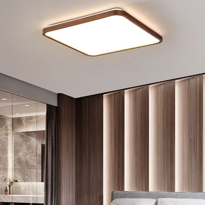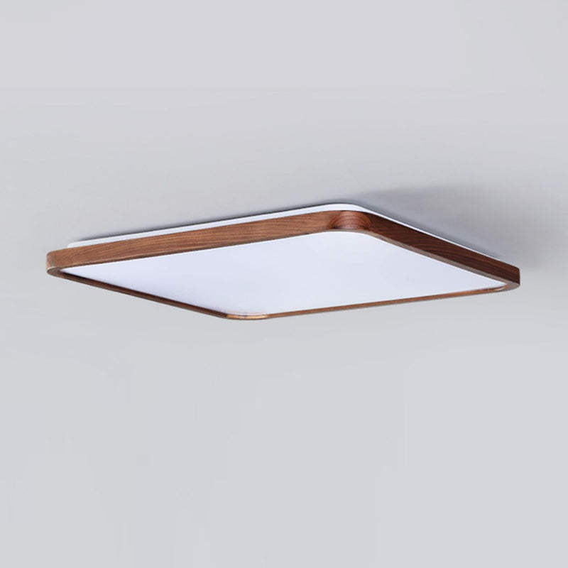 Modern Wood Flush Mount Geometric Shape Ceiling Lamp with Acrylic Shade for Bedroom