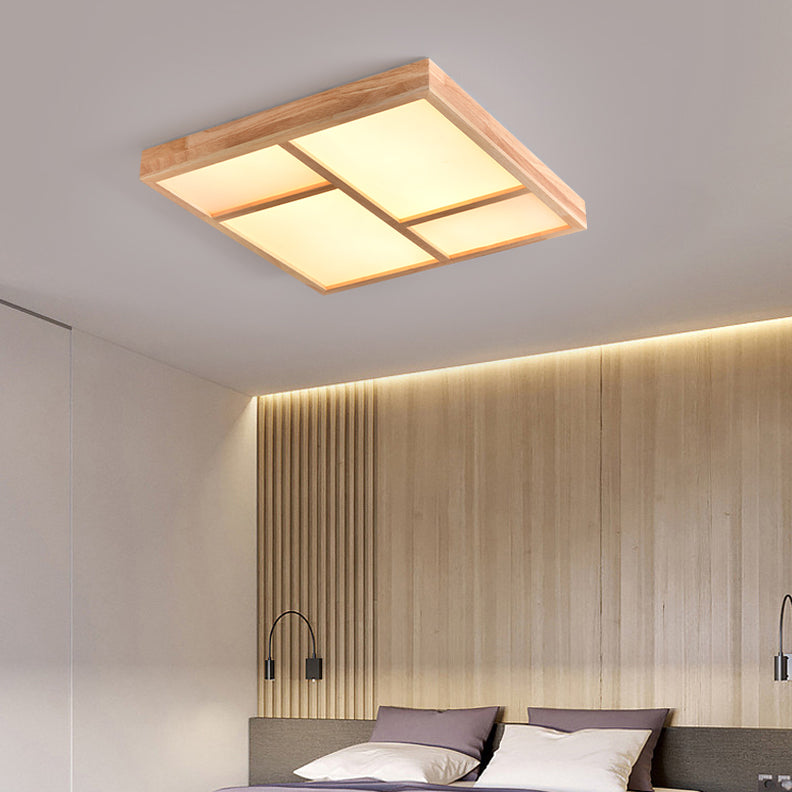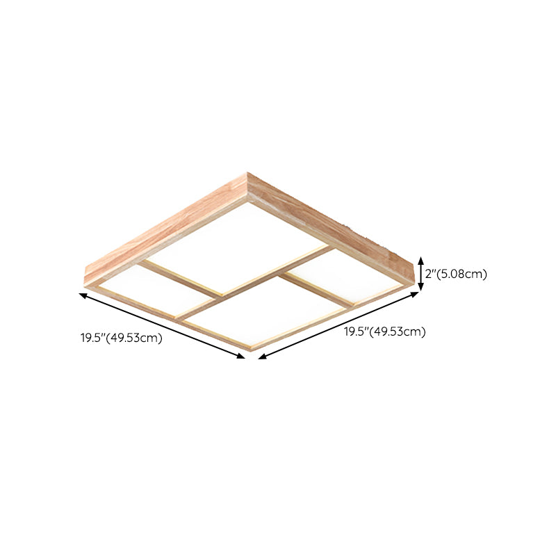 Modern Wood Flush Mount LED Geometric Shape Ceiling Light with Acrylic Shade for Bedroom