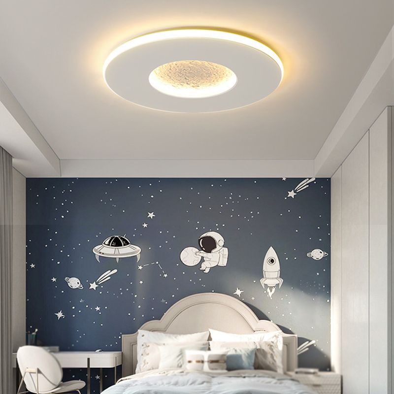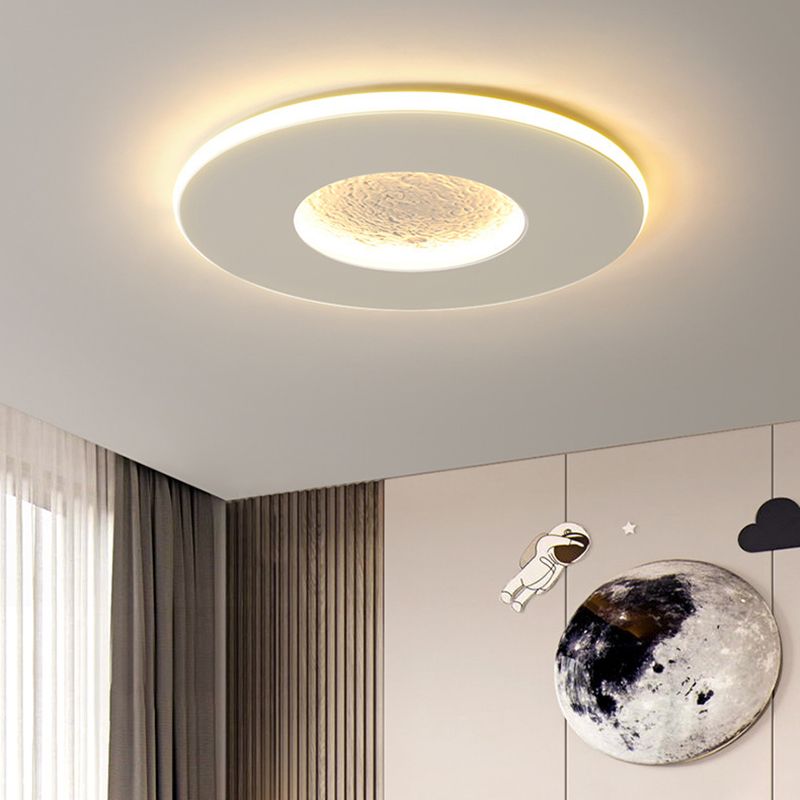 Moon Shape Flush Mount in White Kids Style LED Ceiling Flush