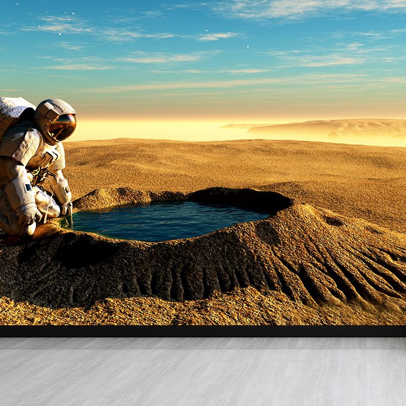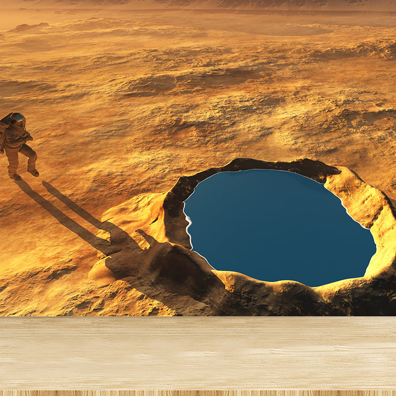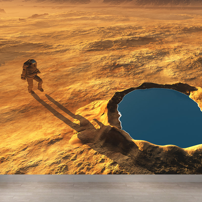 Mysterious Space Scene Mural Decal for Living Room, Orange, Custom Size Available