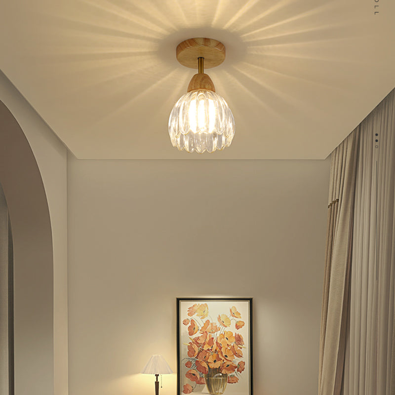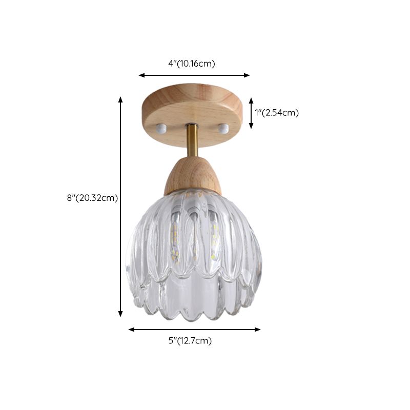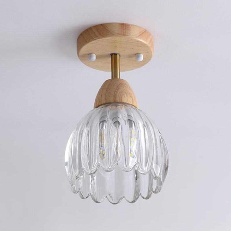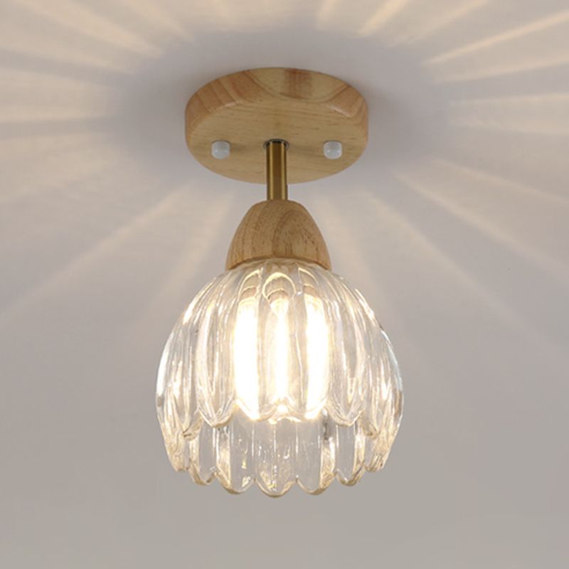 Nordic Flush Mount Flower Ceiling Light Fixture with Wood and Glass for Hallway