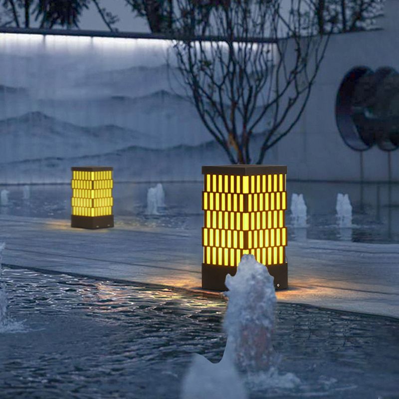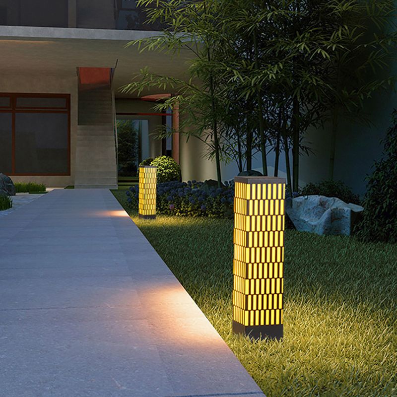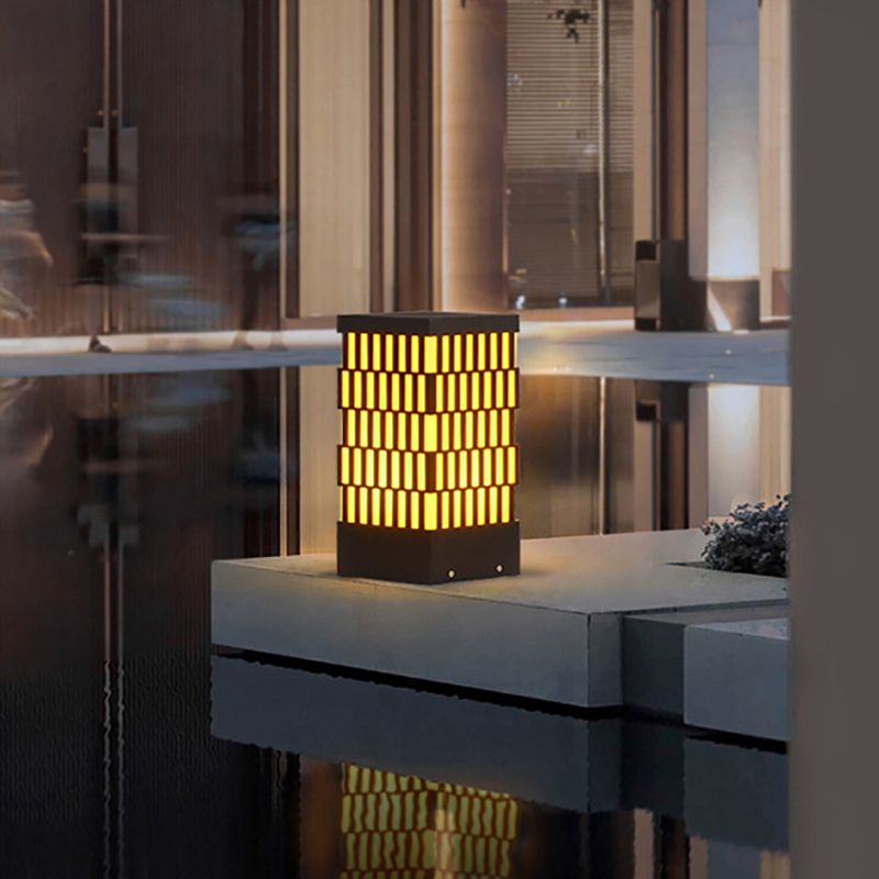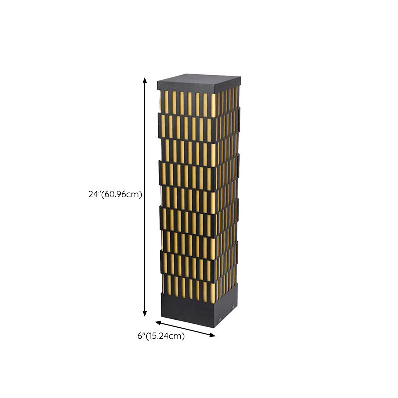 Rectangle Pillar Lamp Contemporary Metal Outdoor Waterproof Light in Black