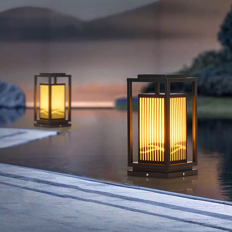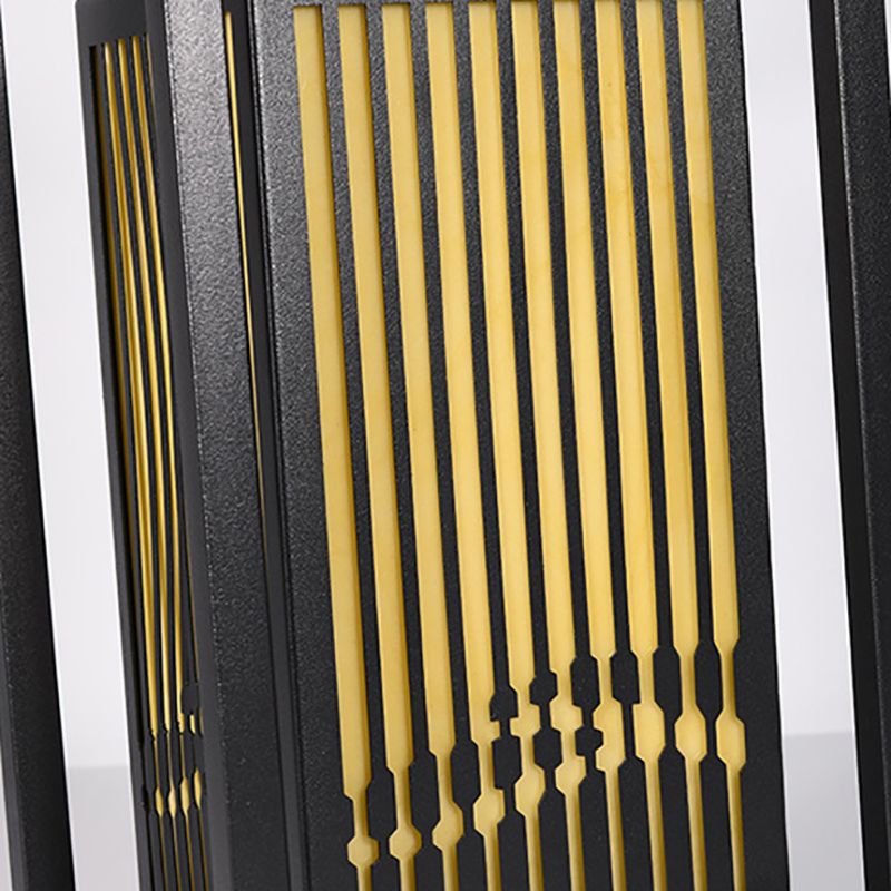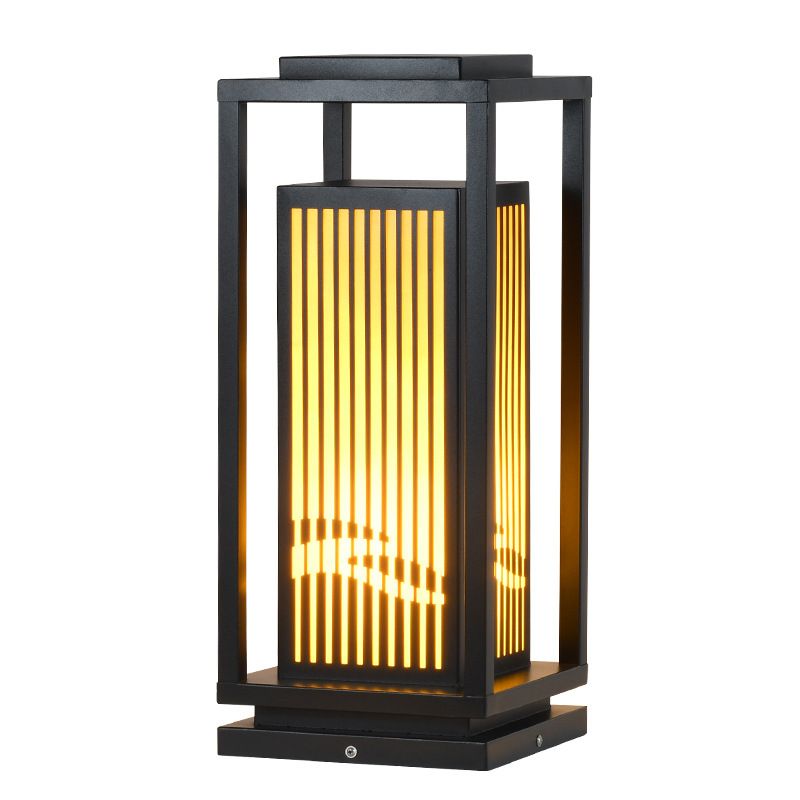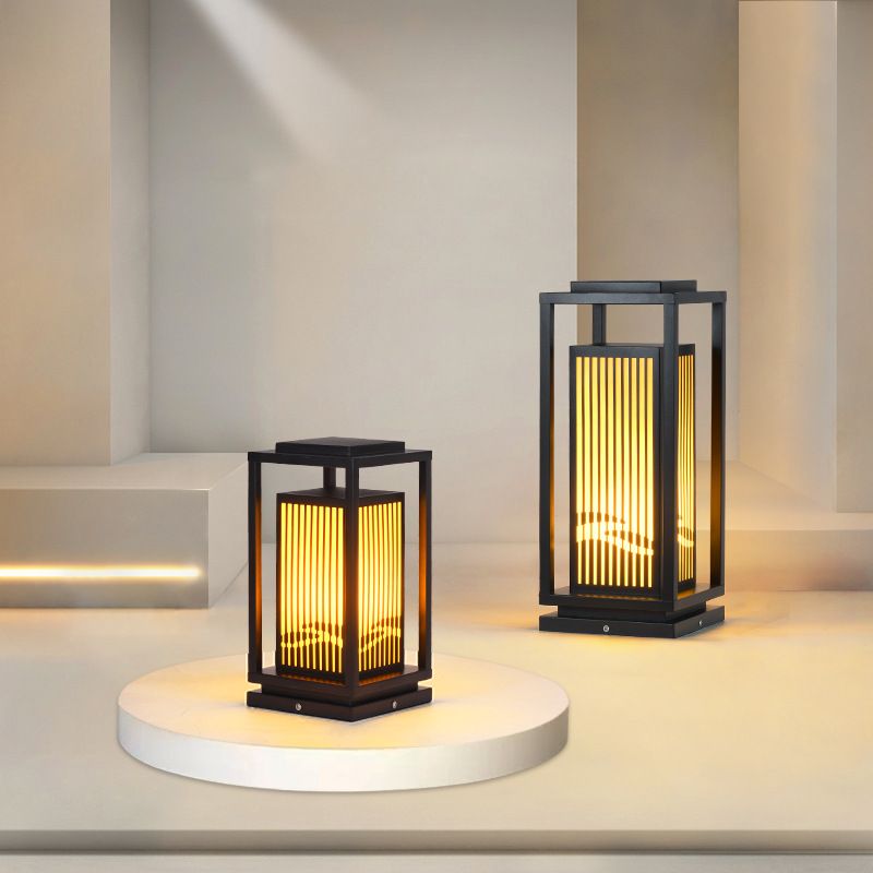 Rectangle Solar Pillar Lamp Contemporary Metal Outdoor Waterproof Light in Black