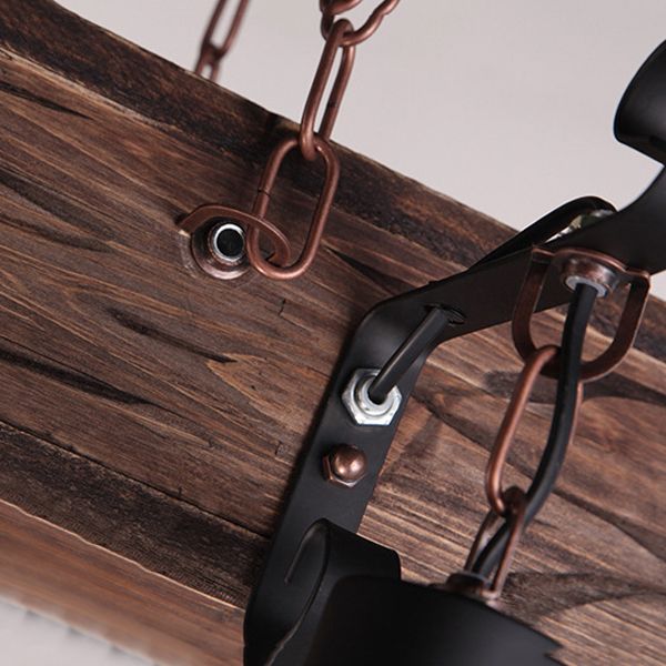 Rectangular Shape Pendant Light Modern Style Wood 6 Lights Hanging Lamp in Brown