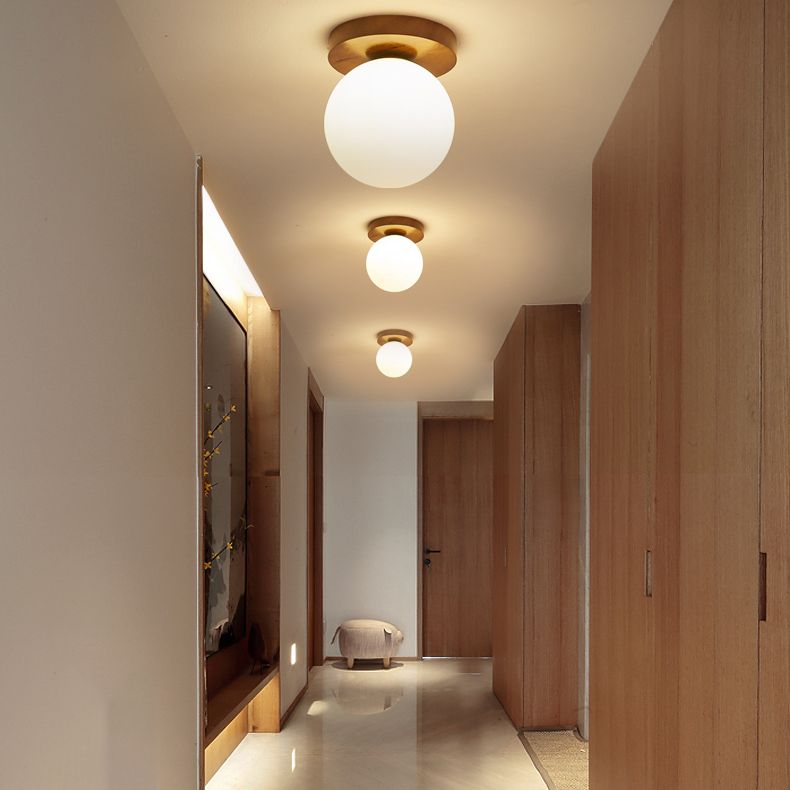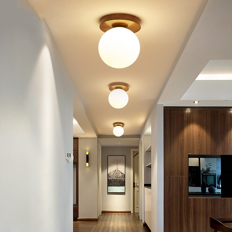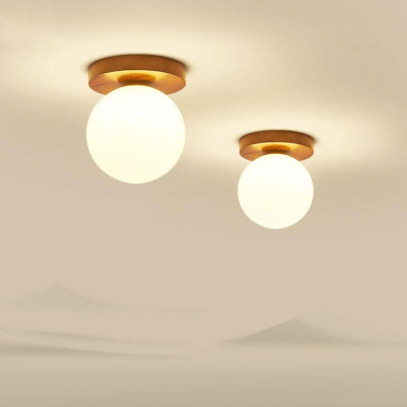 Spherical Ceiling Mounted Fixture Simplicity Style Wood Ceiling Mounted Light