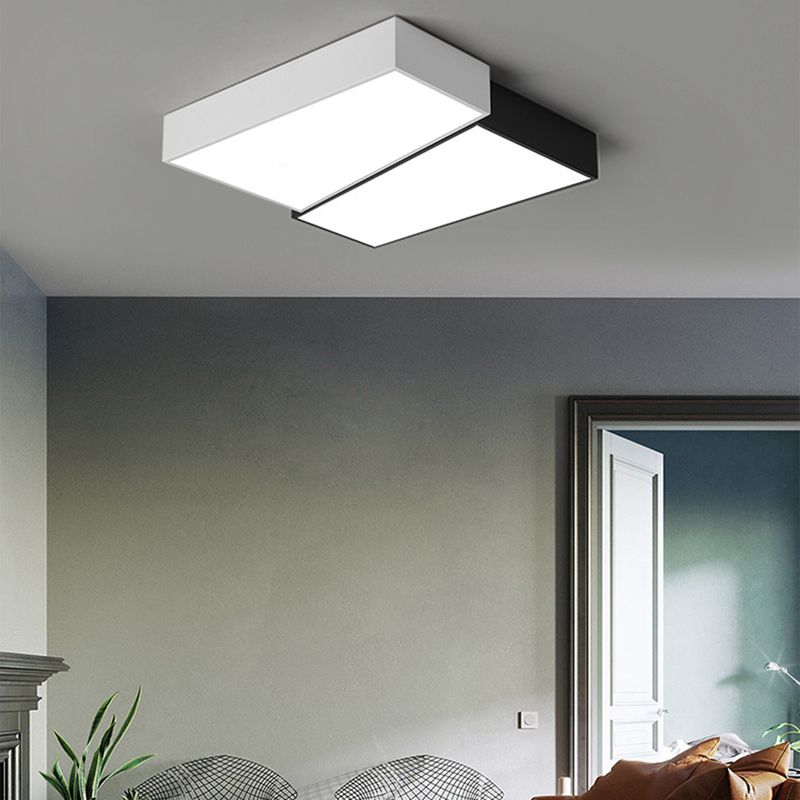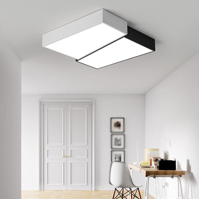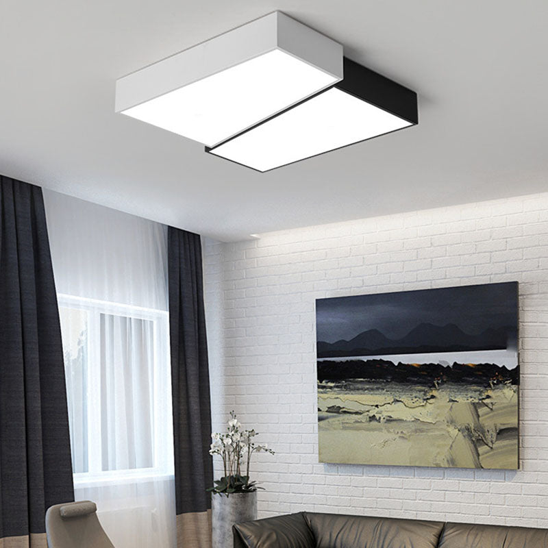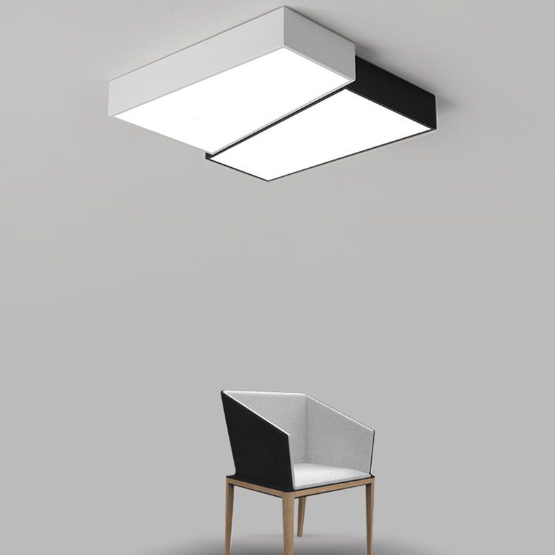 Square LED Ceiling Flush in Black & White Iron Modern Flush Mount Lighting