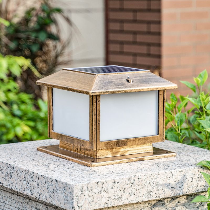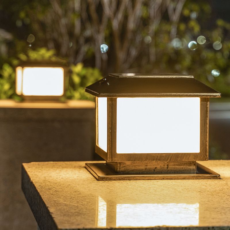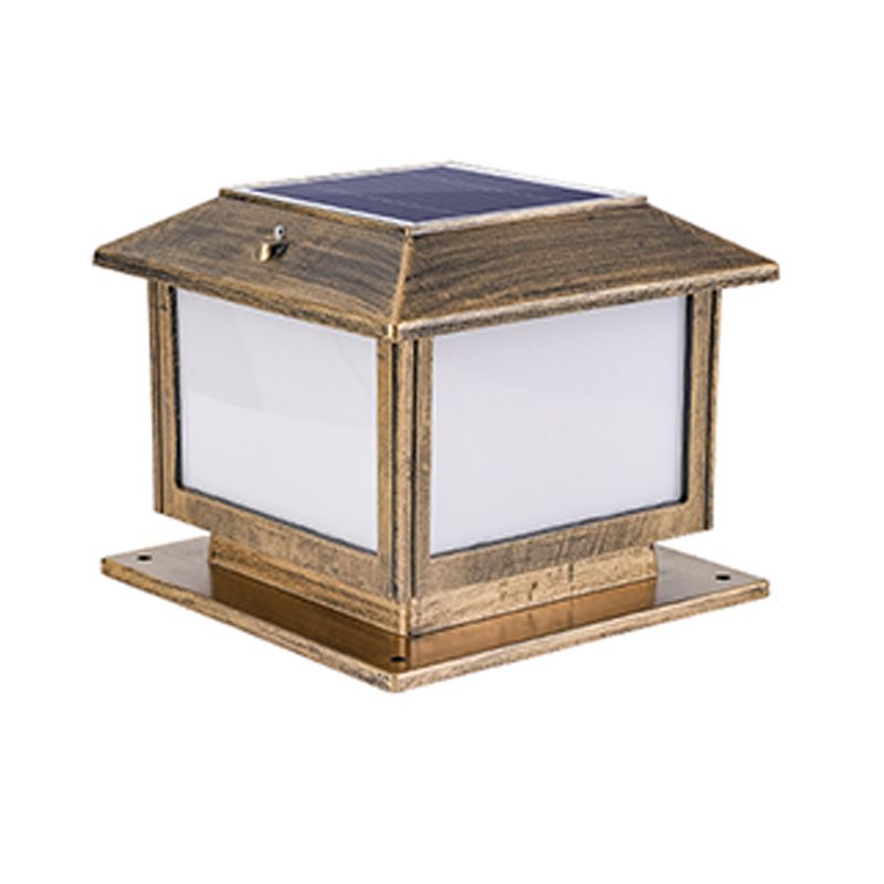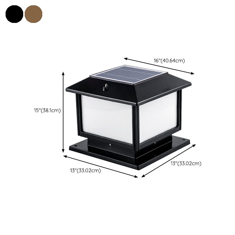 Square Solar Pillar Lamp Contemporary Metal Outdoor Waterproof Light