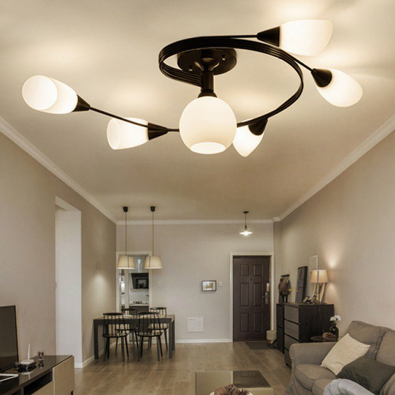 Starburst Flush Mount Light Contemporary Glass Semi Flush Lighting in Black/White