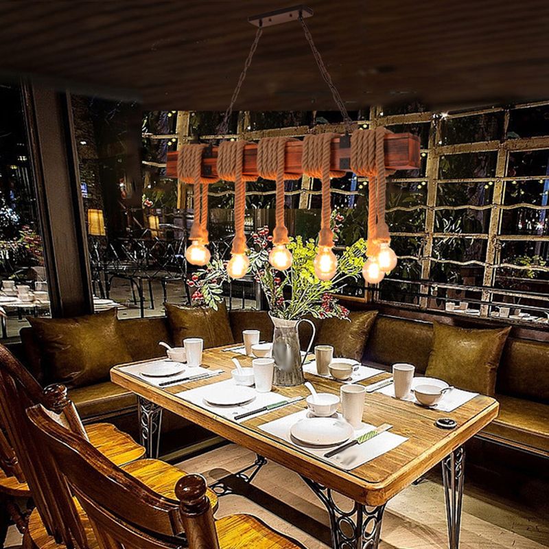 Wooden Island Light Industrial Style Island Hanging Light for Living Room