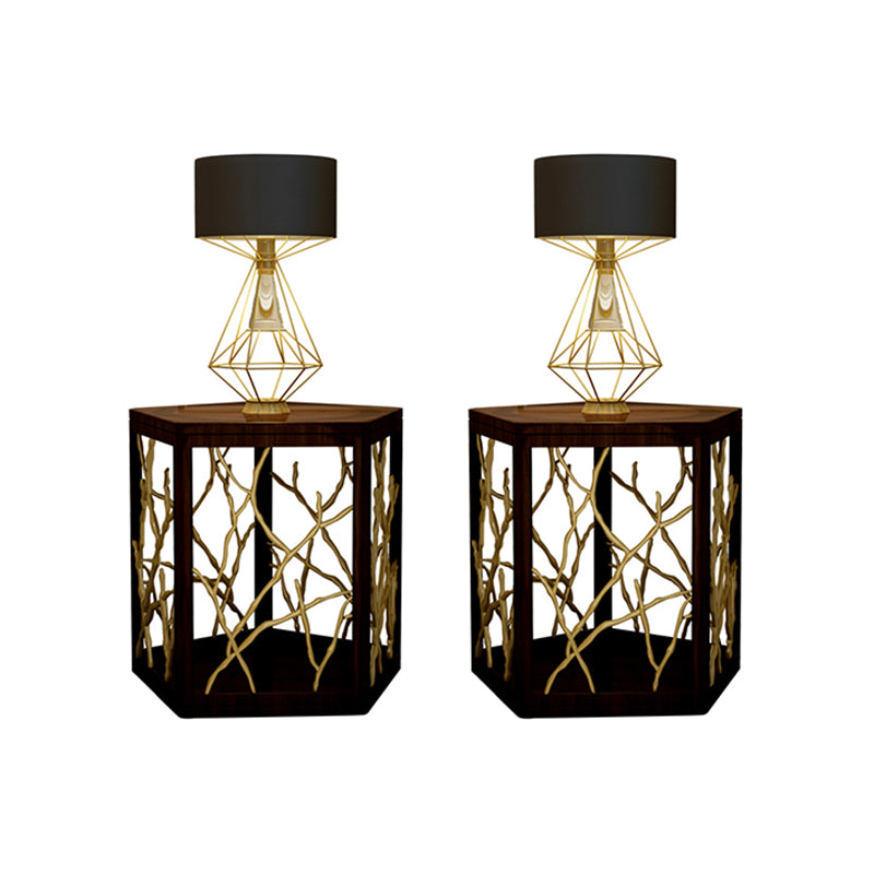 15" Wide Glam Corner Table Solid Wood Gold Accent Side Table