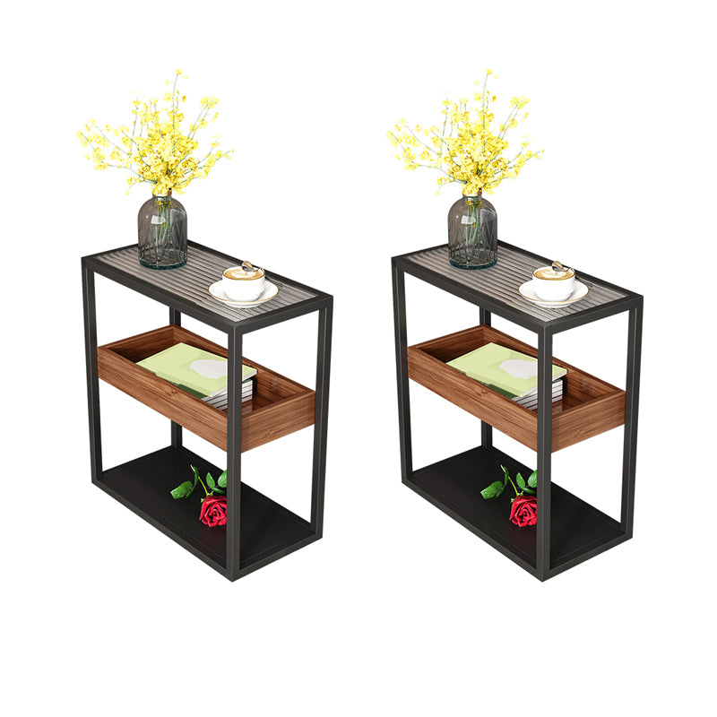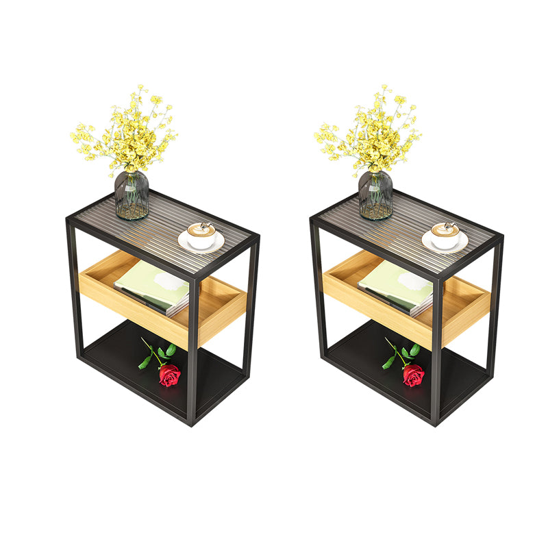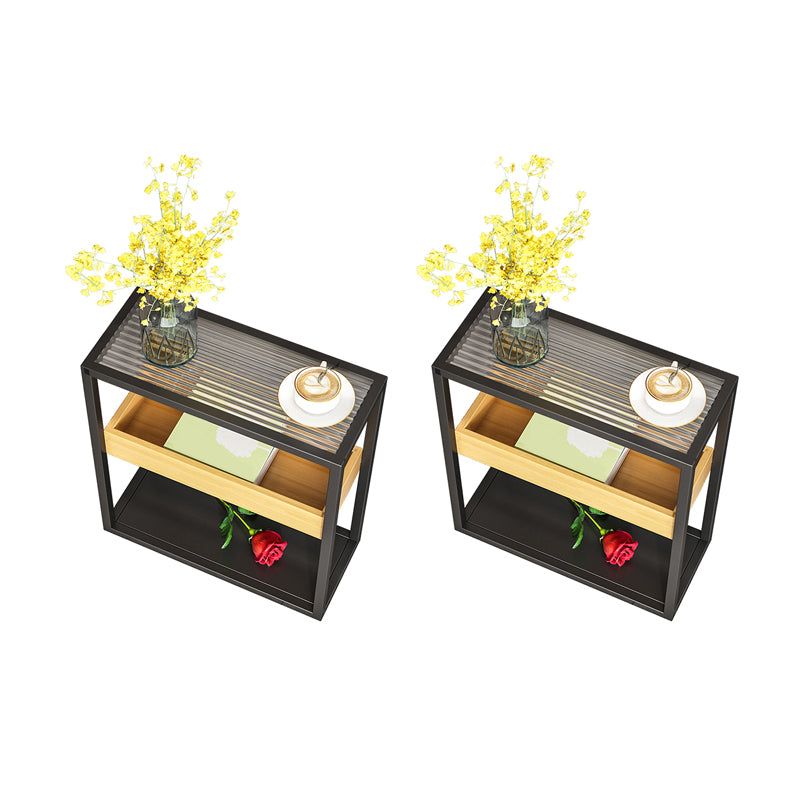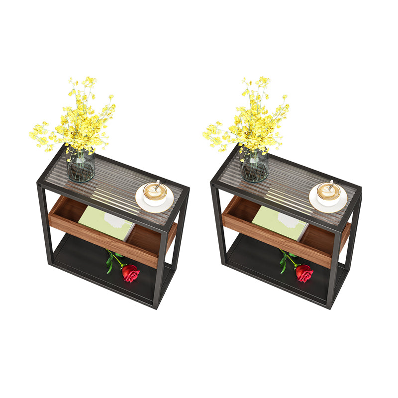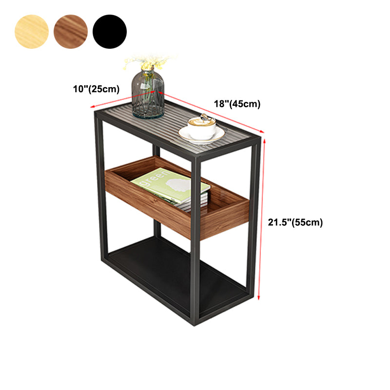21.6" Tall Modern Rectangular Glass Top Side Table Iron Frame End Table with Shelves