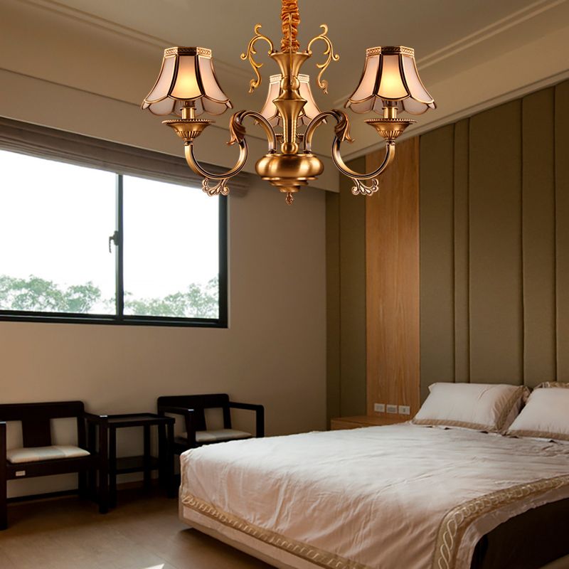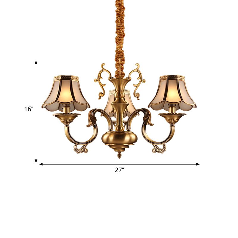 Araña colgante de oro de vidrio esmerilado 3/5/6 bulbos accesorio de iluminación suspendida colonial con diseño radial