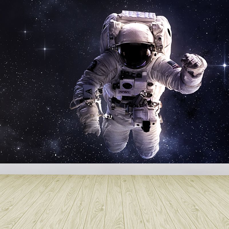 Black Stars and Astronaut Mural Wallpaper for Decoration Sci-Fi Living Room Wall Art