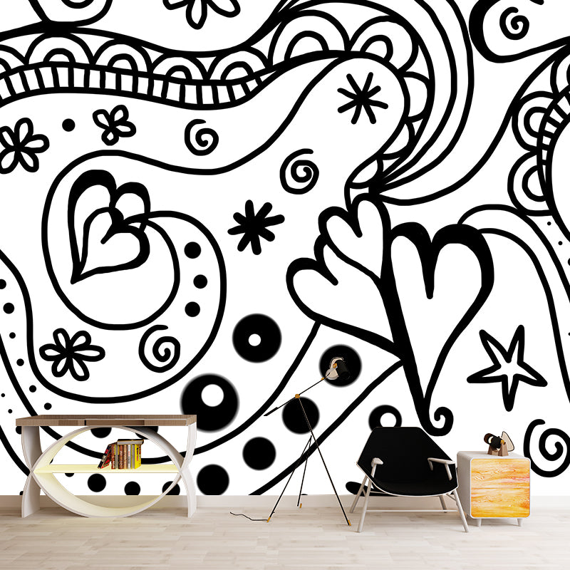 Contemporary Pattern Mildew Illustration Wall Mural Horizontalt for Living Room